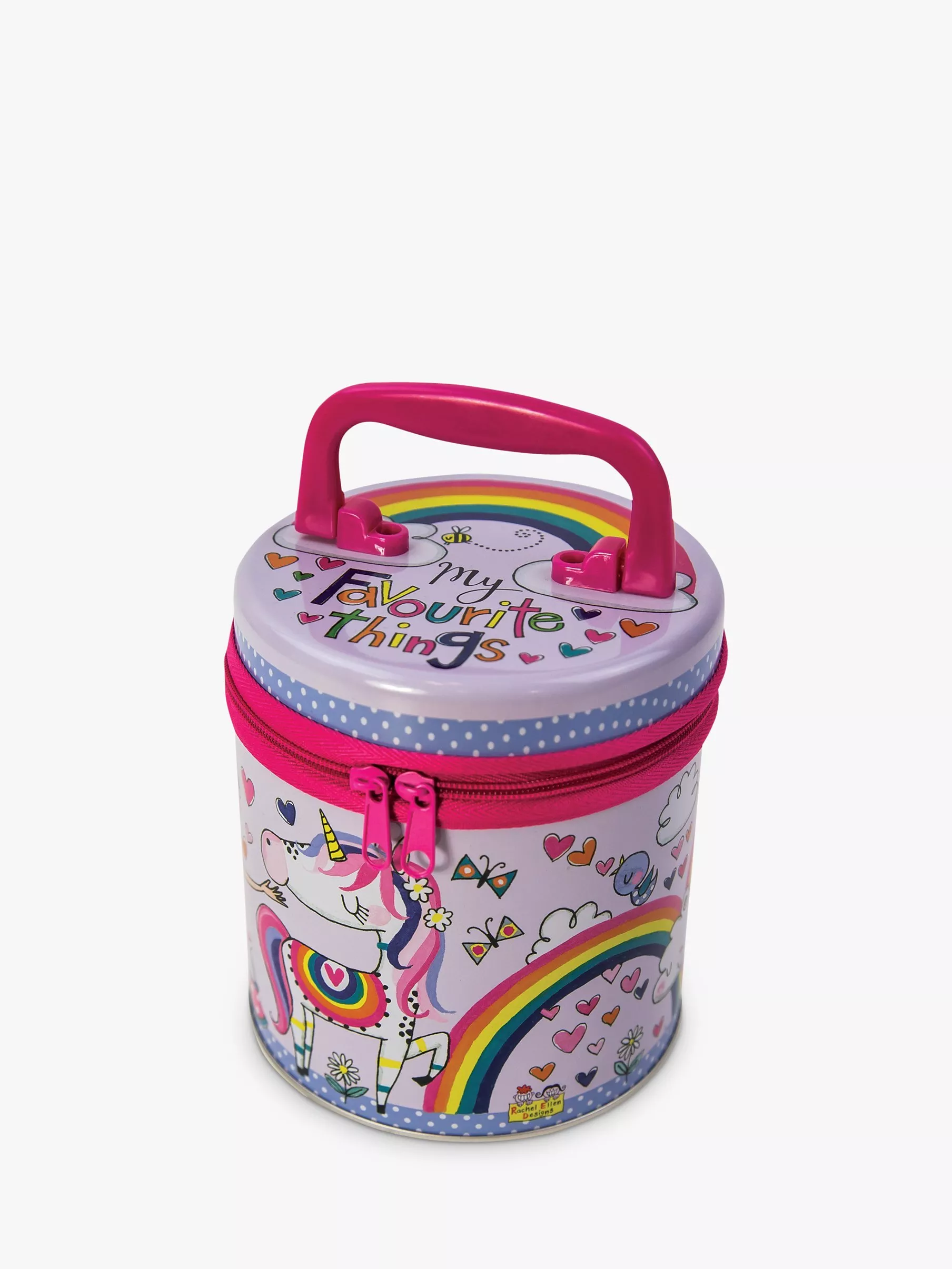 Great for accessories and bits and bobs, this tin comes with a handle and zip and is offered in a fun, fantasy design.