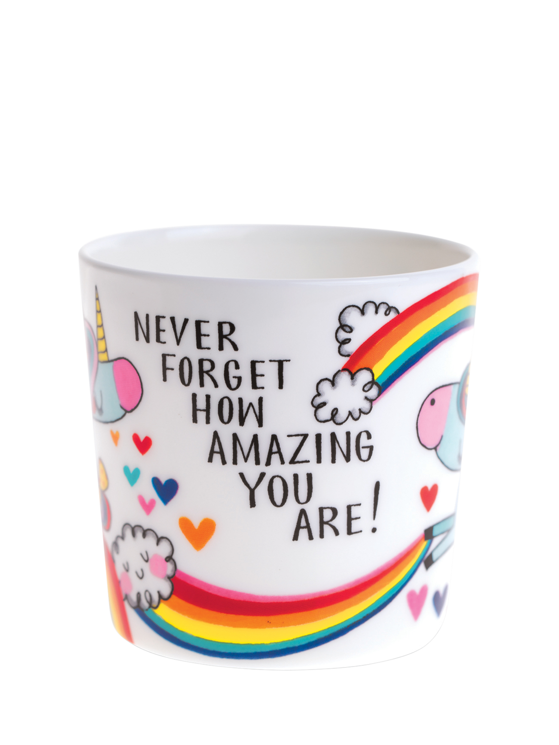 This bright and fun premium quality fine bone china unicorn mug is supplied in a funky gift box.