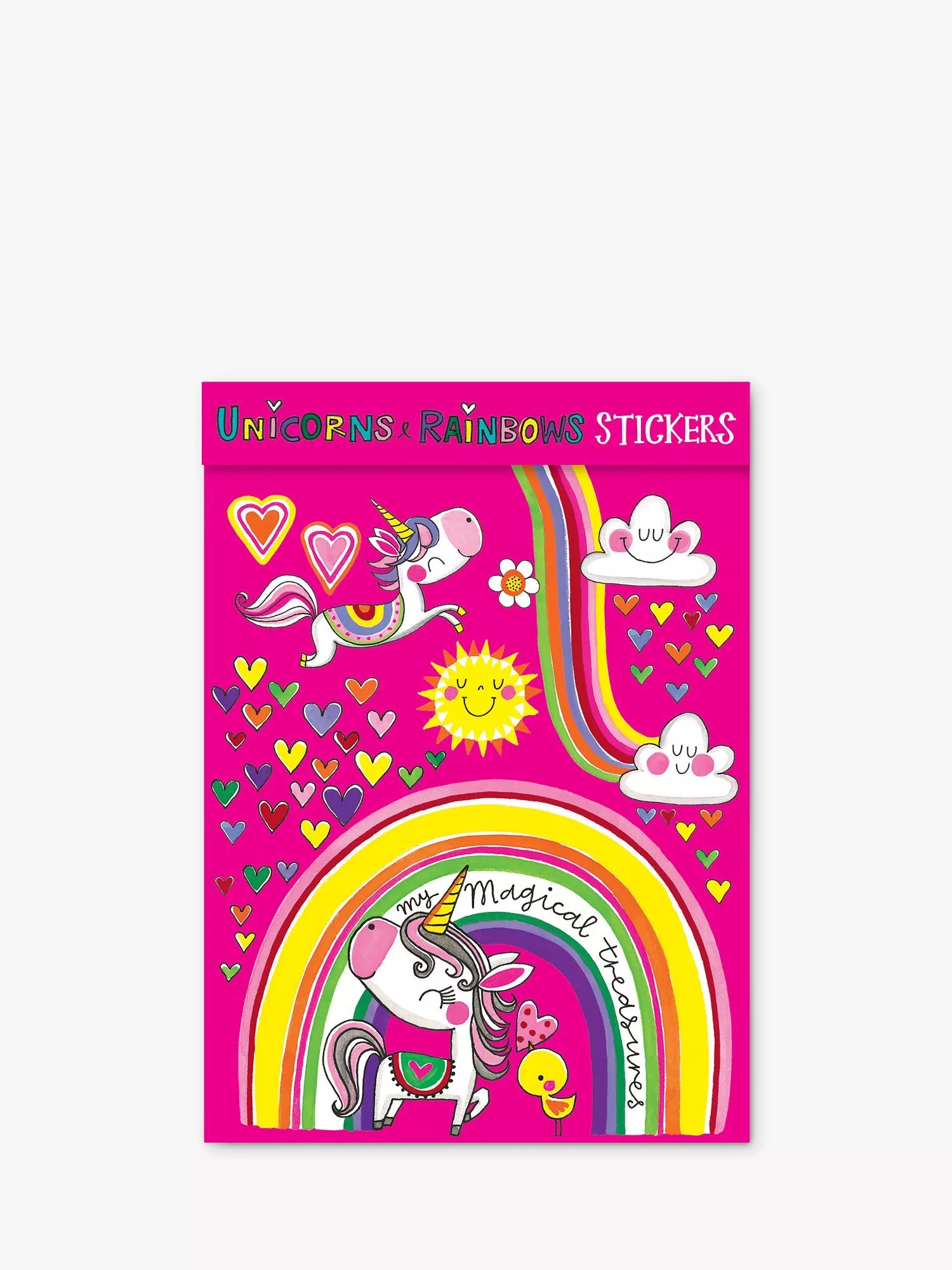 This eye-popping sticker set contains 4 sheets of unicorn themed shaped stickers totalling 80 stickers per book. Each sticker sheet is perforated at the top and the cover is gloss laminated.