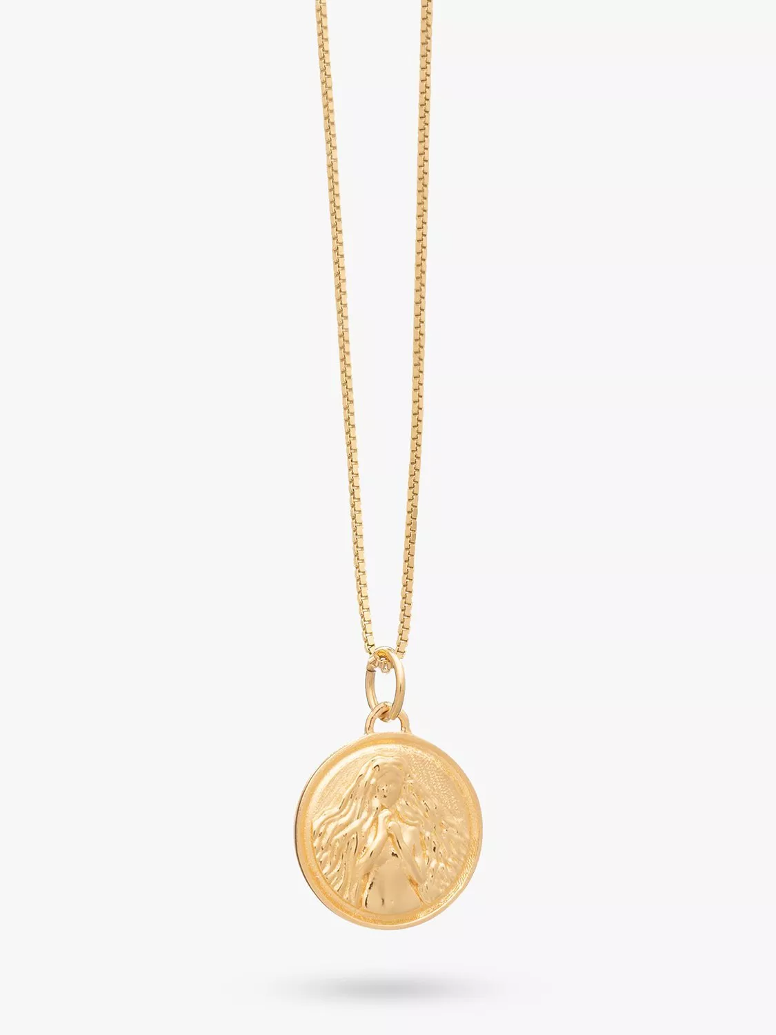 Hand-drawn and inspired by tattoo art, this zodiac art coin necklace hangs from a diamond-cut fine box chain that's adjustable in length.