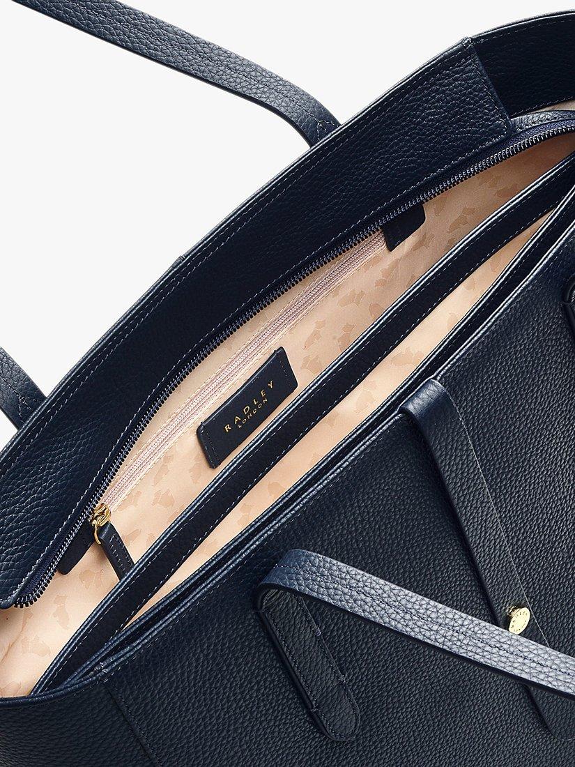 You can never go wrong with a classic tote , which is why we love our Abingdon Road bag. Crafted in strong, grained leather, this classic shape is designed to take you through the working week with a spacious interior that keeps your laptop and personal items safe. On the outside, side pockets, a slim tab detail and our hanging key fob give it our signature finish. - Crafted in grained leather- Twin handles- Zip fastening- Slip pockets to sides- Leather tab detail with rivet stud- Compartmented interior - Fabric lining- Interior zipped pocket- Detachable key fob- Foil logo print- Comes with a
