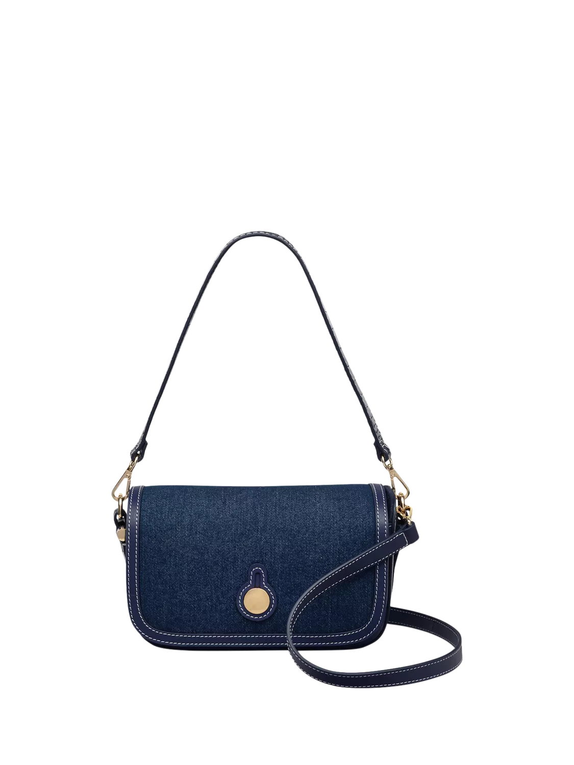Functionality, style and a combination of luxury materials, this edition of Radley's Bathurst Mews crossbody bag has it all. This sophisticated baguette shape is crafted with indigo denim and the brand's croc-embossed and grained leathers. Wear on your shoulder or carry by your side with the long detachable strap.