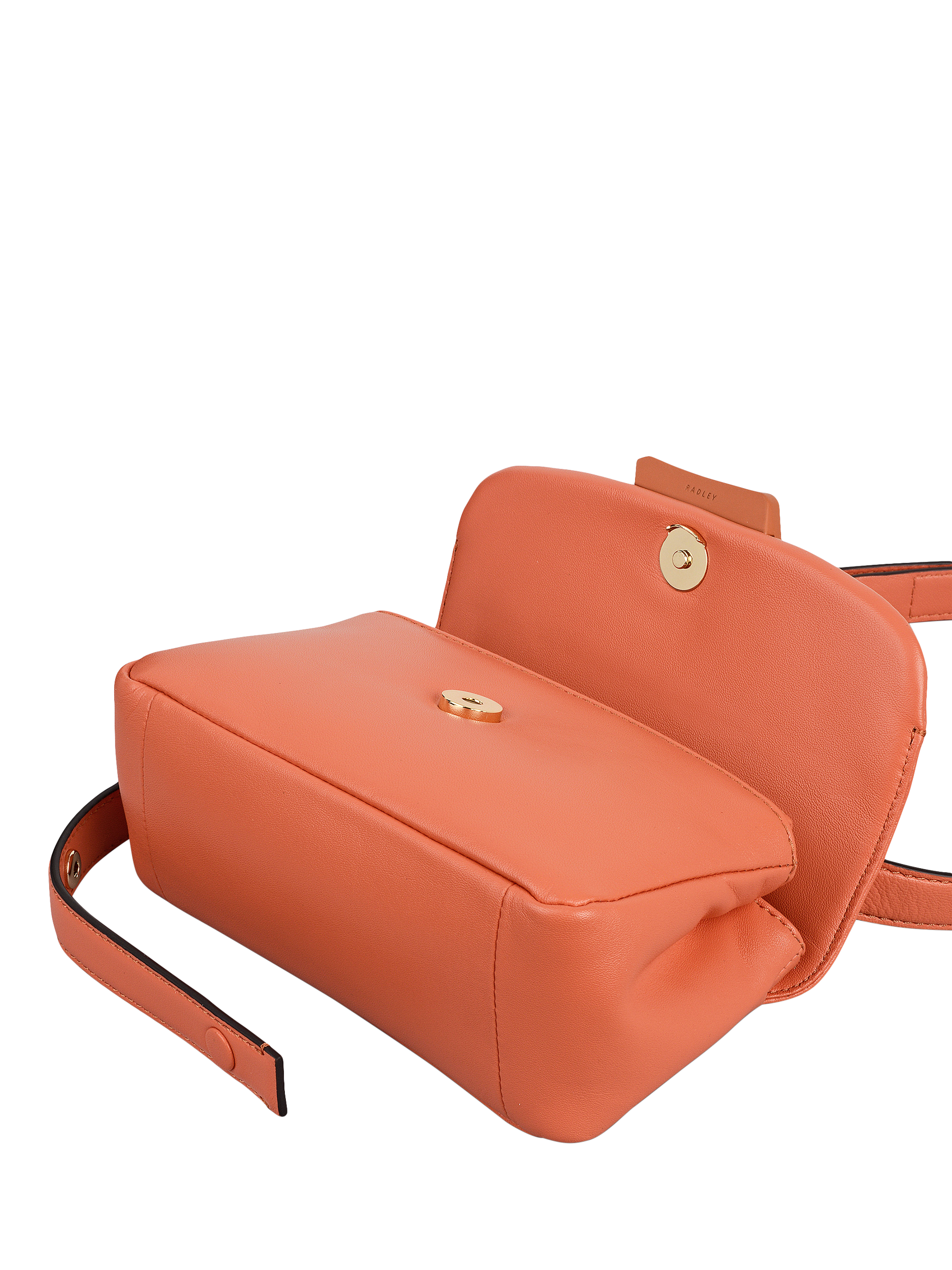 The Belsize is sculpted from soft leather, with a padded flap that enhances its graceful form. Finished with Radley's tonal signature ‘Swatch’ hardware, shaped to echo the curves of folded leather, it features three compartments and an adjustable strap for wearing on the shoulder or across the body.