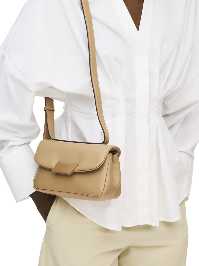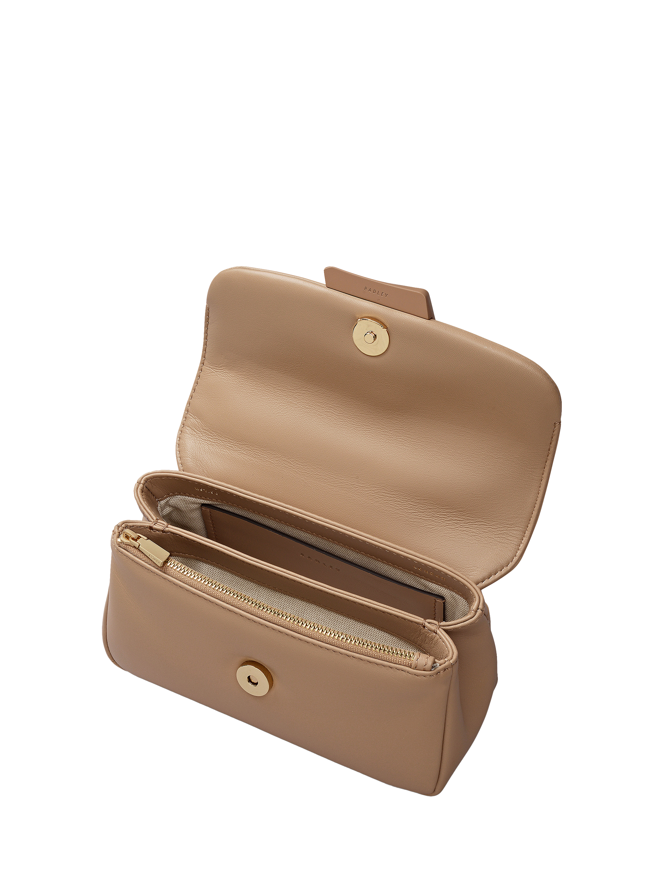 The Belsize is sculpted from soft leather, with a padded flap that enhances its graceful form. Finished with Radley's tonal signature ‘Swatch’ hardware, shaped to echo the curves of folded leather, it features three compartments and an adjustable strap for wearing on the shoulder or across the body.