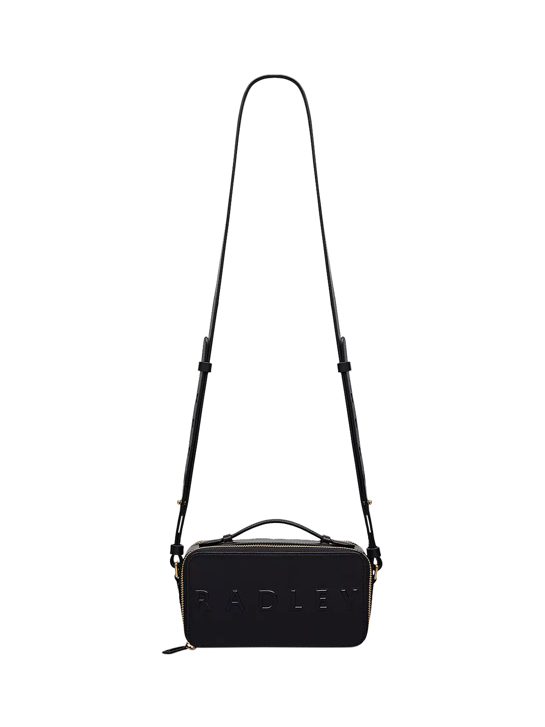 With two zipped compartments and extra pockets, Calvert Road offers just as much functionality as it does style. This mini camera bag is crafted in structured leather with the brand's debossed logo, while the new heritage mark inside adds a signature Radley finish. Designed with a sliding padded top handle, detachable crossbody strap, inserted patch pocket on the back, two compartments, zip fastenings and interior slip pocket. Fits large iPhone or similar device. Comes with a dust bag.