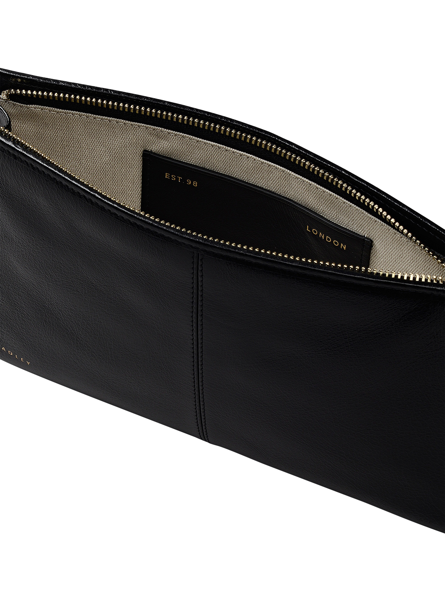 Radley designers chose high-shine leather to create the Chilton Grove pouch. This slim silhouette is crafted with a central seam, an interior card slot with the brand's heritage mark foil embossing and a leather strap that means you can carry it as a wristlet. Features a zip fastening with branded metal puller, Radley canvas lining and interior card slots. Comes with a dust bag.