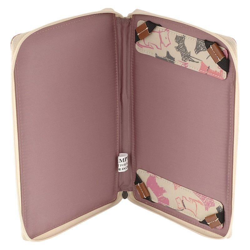 Keep your Kindle safe and scratch-free with this charismatic cover from Radley. Covered in the energetic doodle dog print by artist Rory Crichton and finished in a waterproof Oilskin fabric. The zip around opening and leather tab ensures your device is safe for everyday use.