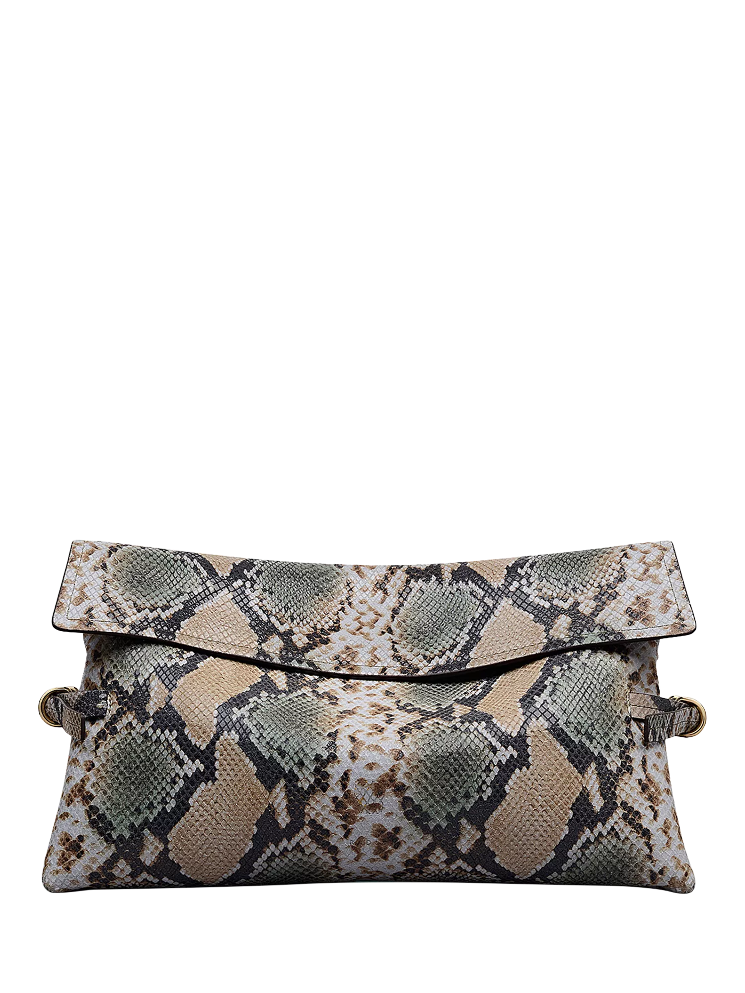 The new Fleet Street clutch bag is crafted with creative origami folds along the soft sides, a flap-over top edge and a strong magnet closure. A stylish shape crafted in snake-embossed leather with signature Radley craft details, including hand-stitched tacks on side tabs, an envelope folded base and our heritage mark foil branding inside. Comes with a dust bag.