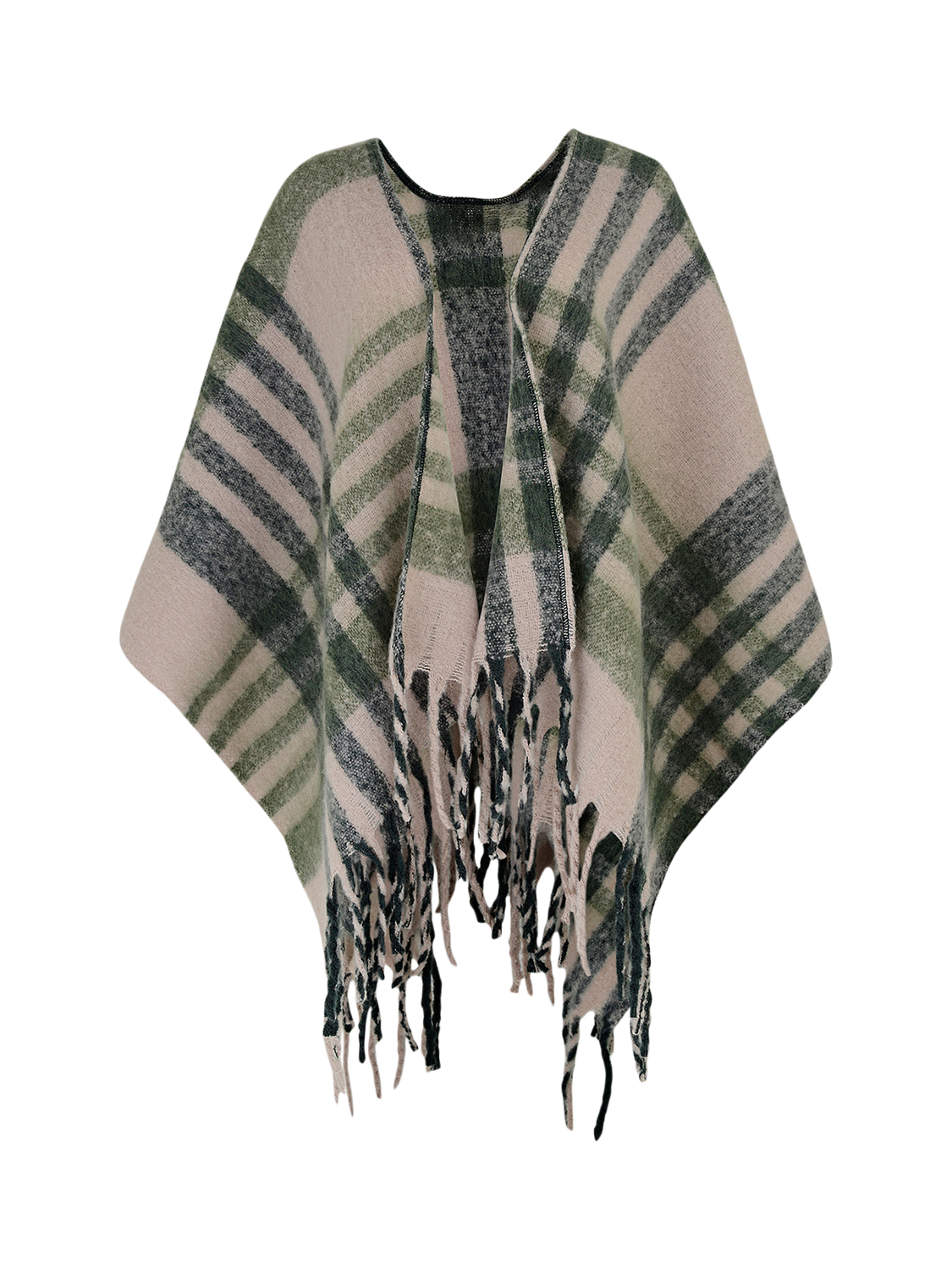 Perfect for frosty days. This Fluffy Check poncho returns this autumn in a new colour palette, made using a super soft recycled polyester blend. Wrap yourself up in this cosy style, designed with their signature check pattern and fringed ends.