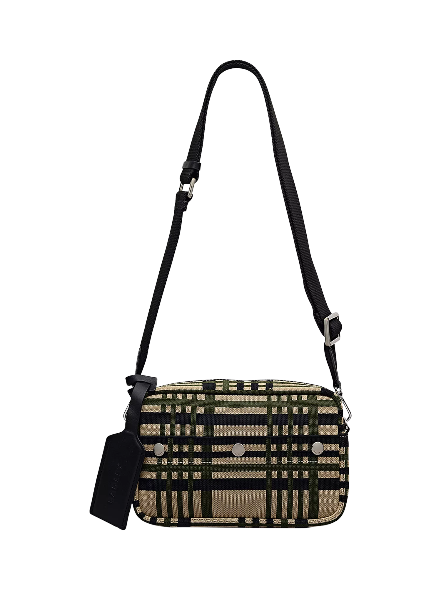 A lesson in designing durable, timeless versatility. The Hadleigh Place crossbody bag is made with thick fly-knit fabric, an adjustable webbing strap that can be removed and a press stud pocket across the front, this everyday style has endless practicality. Designed with leather trims, an adjustable webbing strap with dog clip ends and interior pocket.