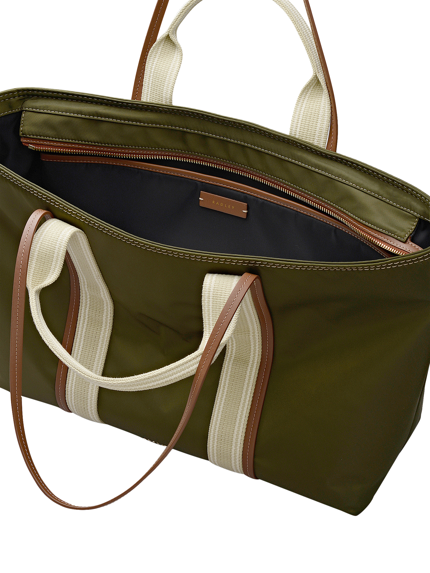 Instead of going into landfill, plastic bottles have been transformed into the recycled polyester fabric used to make Halley Row tote bag. Combining responsible craftsmanship with practicality, this spacious design features double handles, thick and thin stitch detailing and a padded laptop sleeve inside.