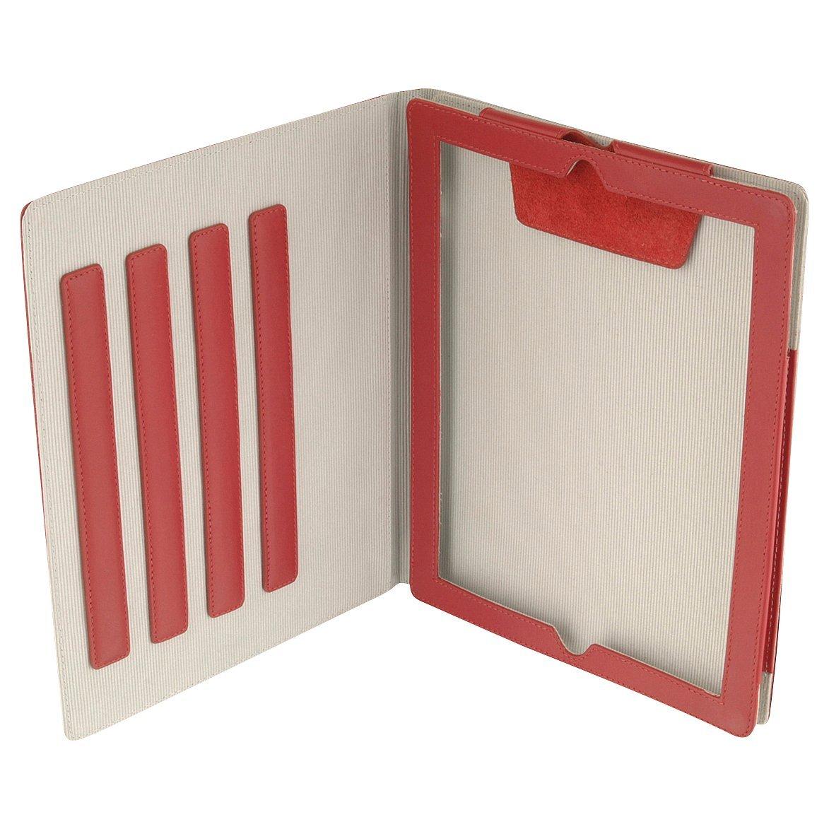 The case features a magnetic closure that opens to become an adjustable height stand with a riptape device sleeve to keep it secure and accessible.