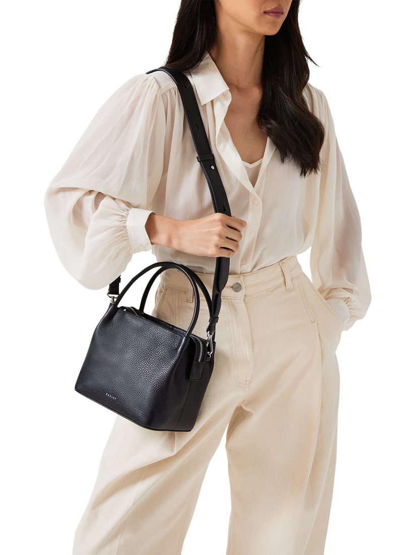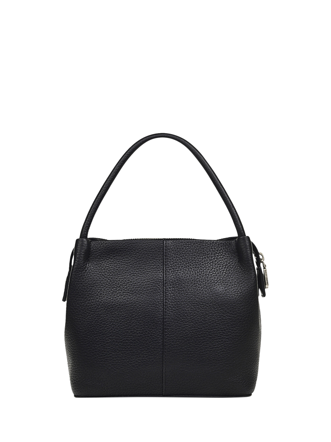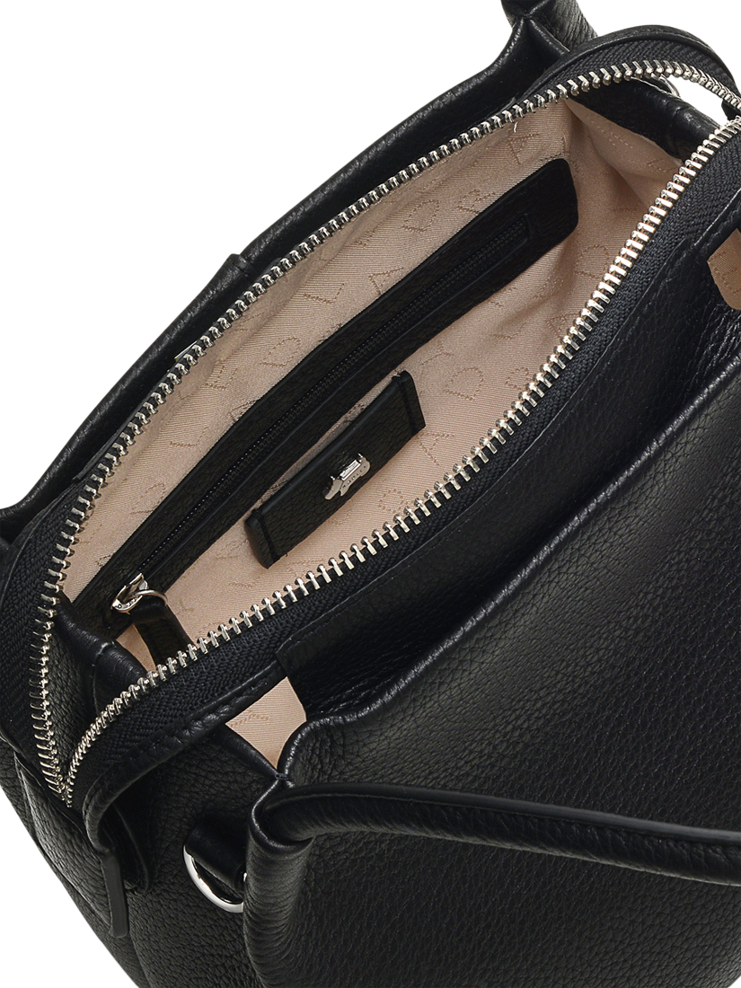 Made in grained leather- Tubular handles- Detachable cross body strap- Zip fastening with branded metal puller- Extended zip with magnetic ends- Fabric lining- Interior zip and slip pockets- Foil logo- Comes with a dust bag.