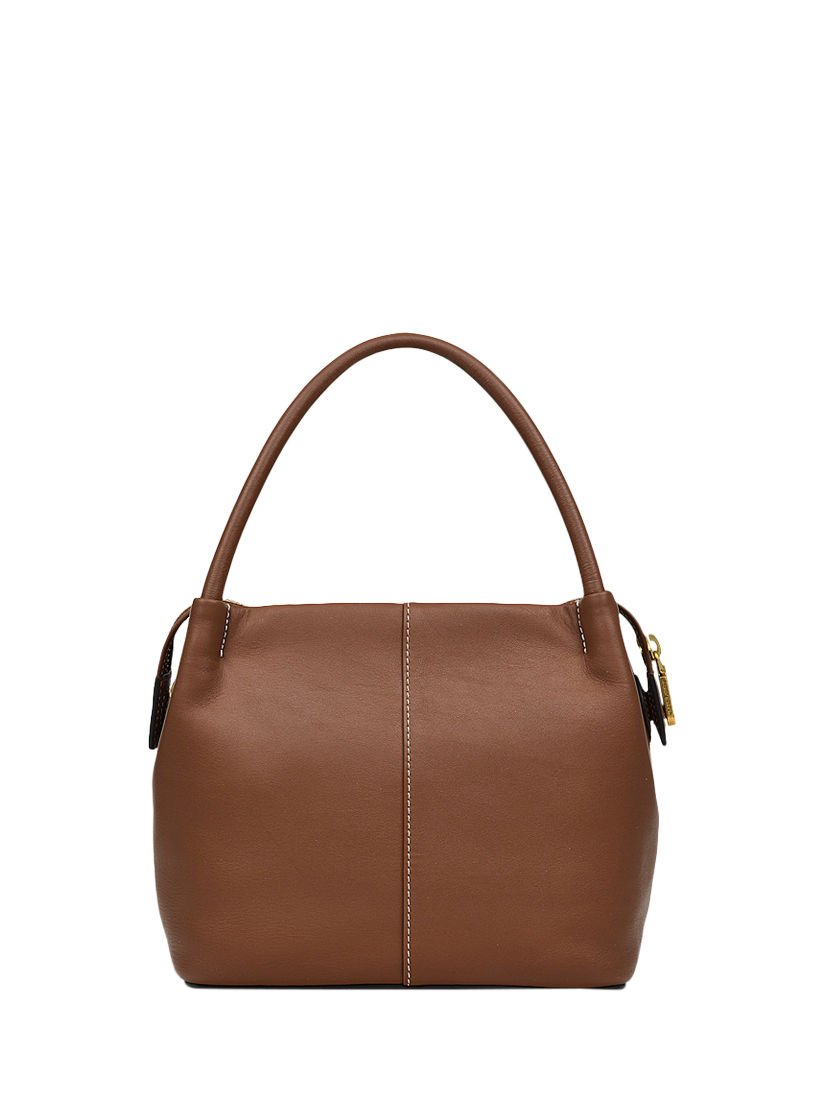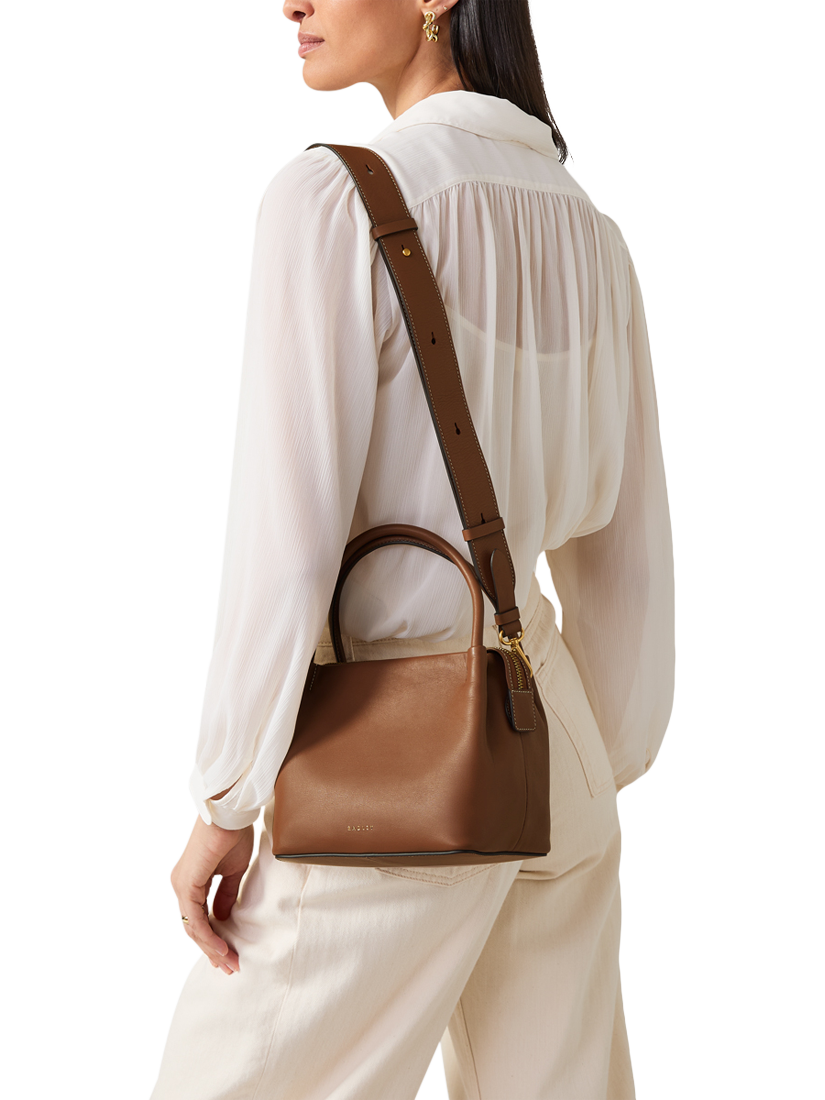 Made in grained leather- Tubular handles- Detachable cross body strap- Zip fastening with branded metal puller- Extended zip with magnetic ends- Fabric lining- Interior zip and slip pockets- Foil logo- Comes with a dust bag.