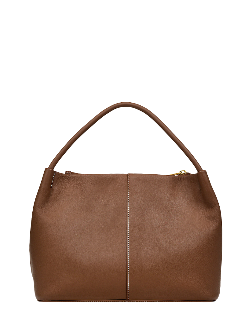 Made in grained leather- Tubular handles- Detachable cross body strap- Slip back pocket- Zip fastening with branded metal puller- Three compartments- Zipped centre section- Fabric lining- Interior zip and slip pockets- Foil logo- Comes with a dust bag.