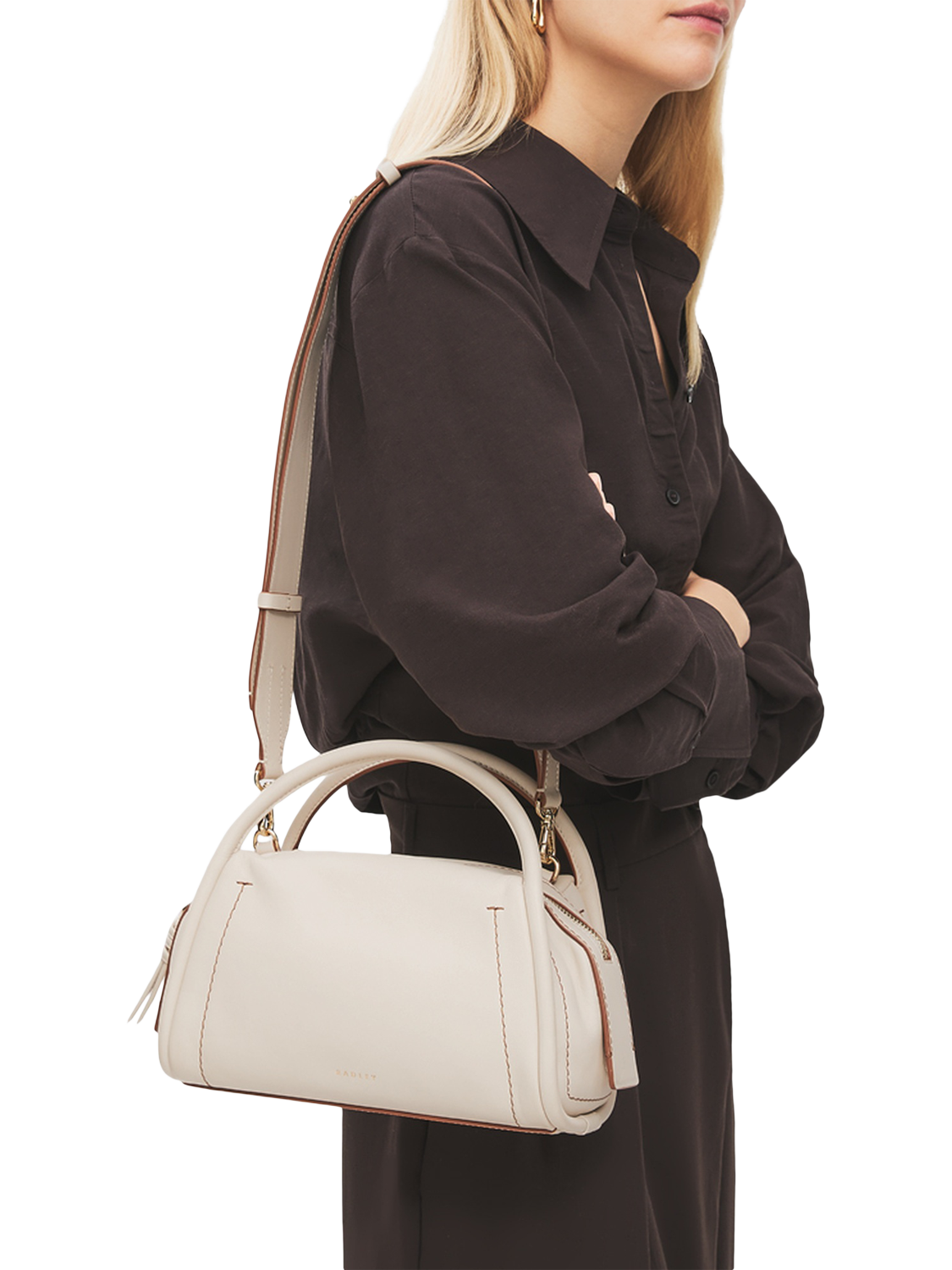 A chunky silhouette crafted with soft, smooth leather, The Golborne is the perfect backdrop to a range of understated craft details. See them in the elongated zip collar with its leather-covered magnetic ends, the knotted zip puller and the tubular top handles that run around the gussets – a feature inspired by a recent Radley style.