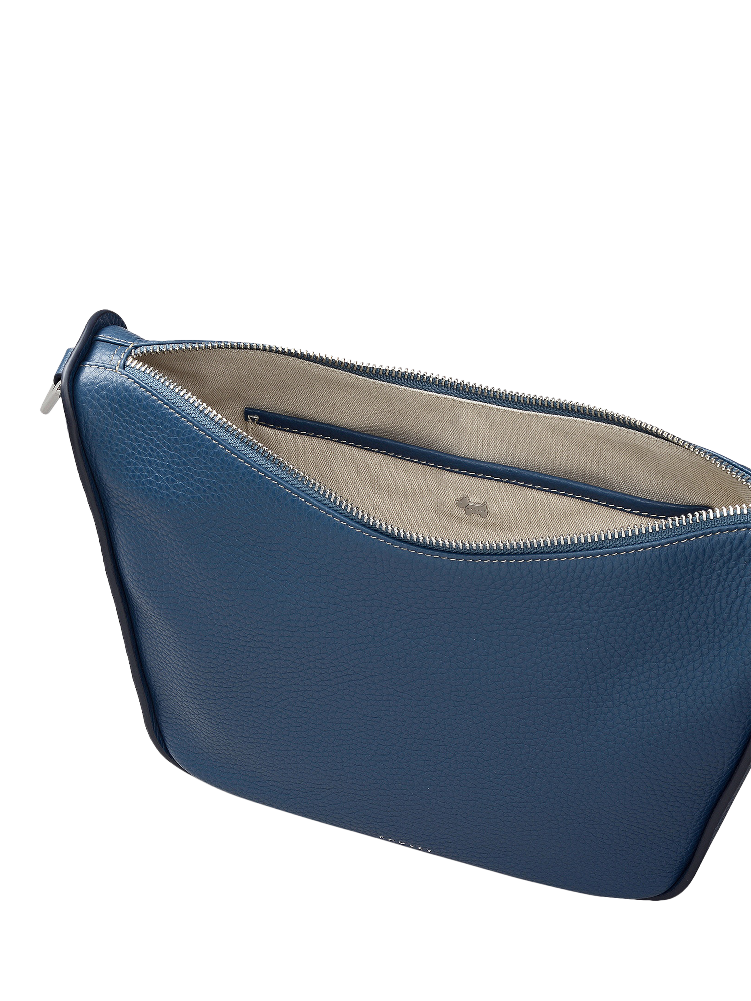 Made with grained leather- Scooped shape- Painted cut edges- Adjustable strap- Zip fastening with branded metal puller and leather trim- Interior pockets - Foil logo- Comes with a dust bag.