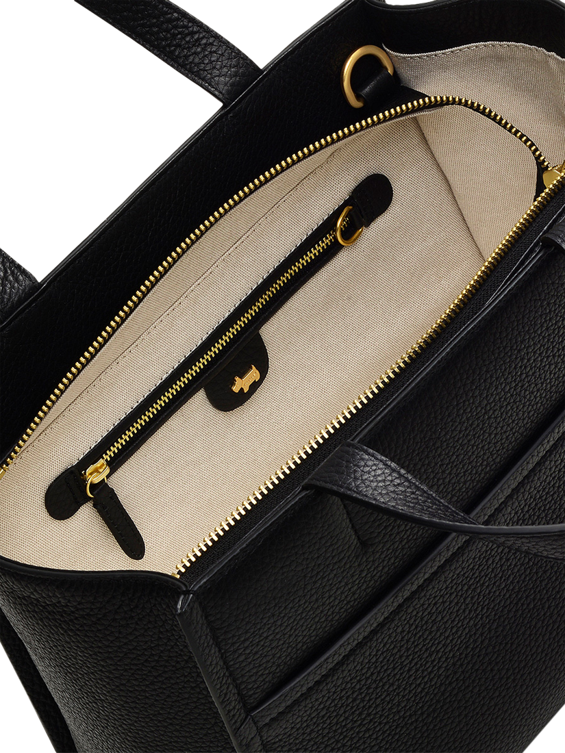 As reliable as your favourite pair of jeans. The Oak Street grab bag is made to last in soft grained leather. A style that'll be there for you whenever you need it, with space for your everyday items and a detachable strap so you can go hands-free. It's the perfect fit.