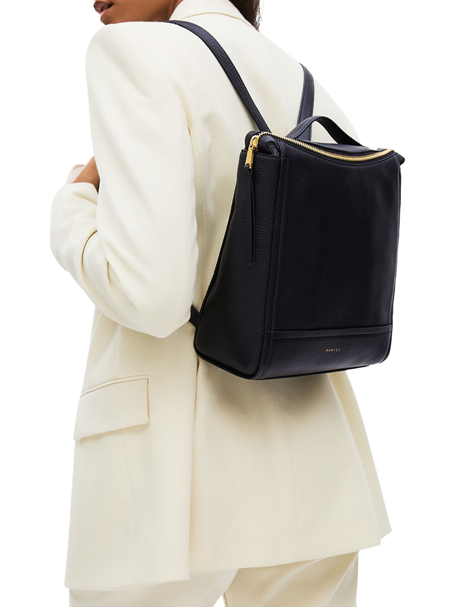 Made to last in soft grain leather. This is the new, smaller size of the Oak Street backpack, complete with subtle craft details. A modern shape for every day, designed with painted cut edges, an extended curved zip fastening and branded hardware. Comes with a dust bag.
