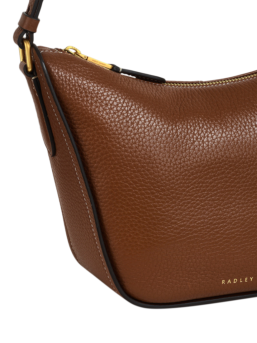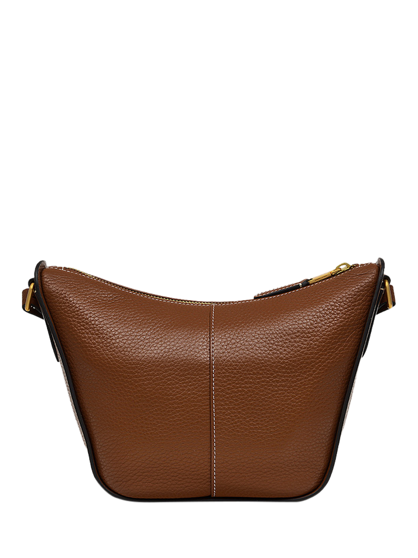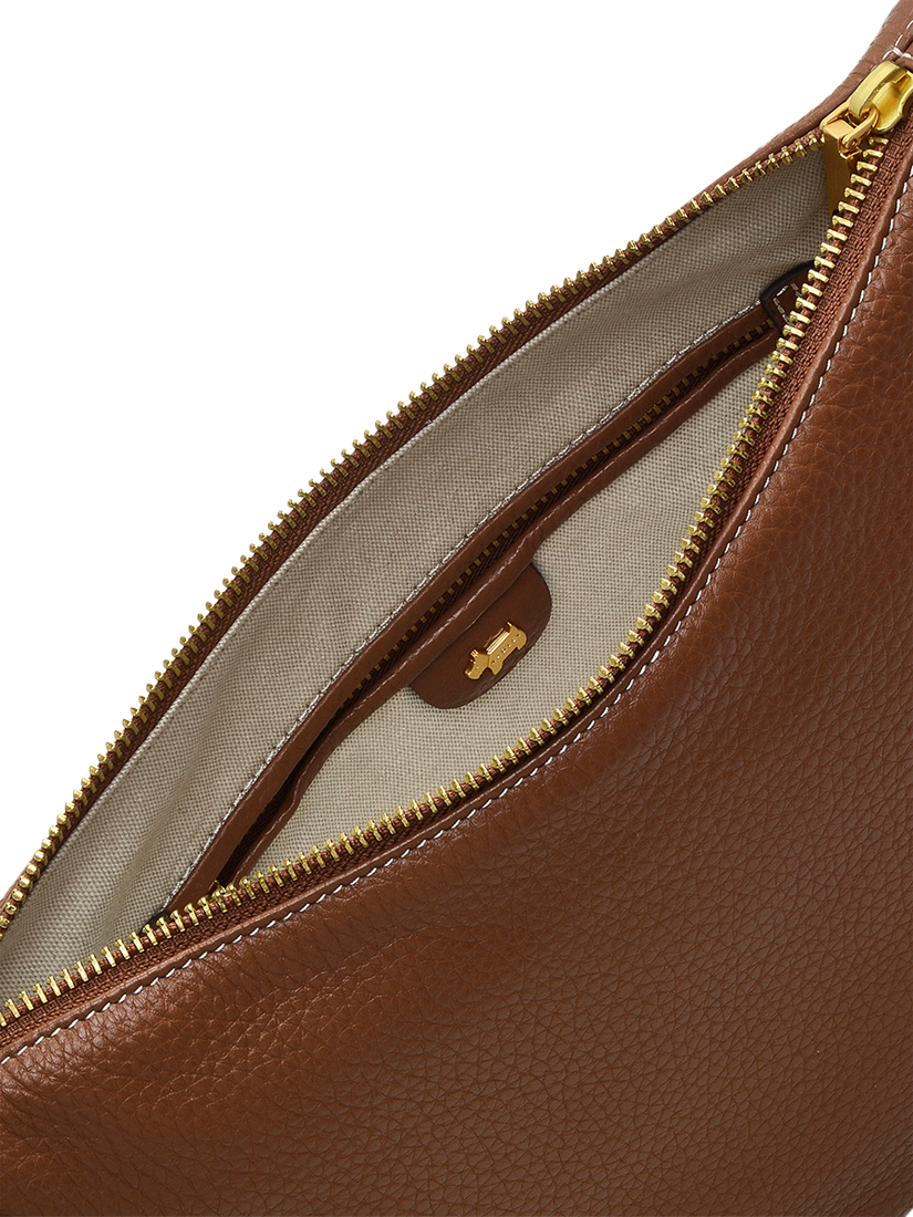 Made with grained leather- Scooped shape- Painted cut edges- Adjustable strap- Zip fastening with branded metal puller and leather trim- Interior pockets - Foil logo- Comes with a dust bag.