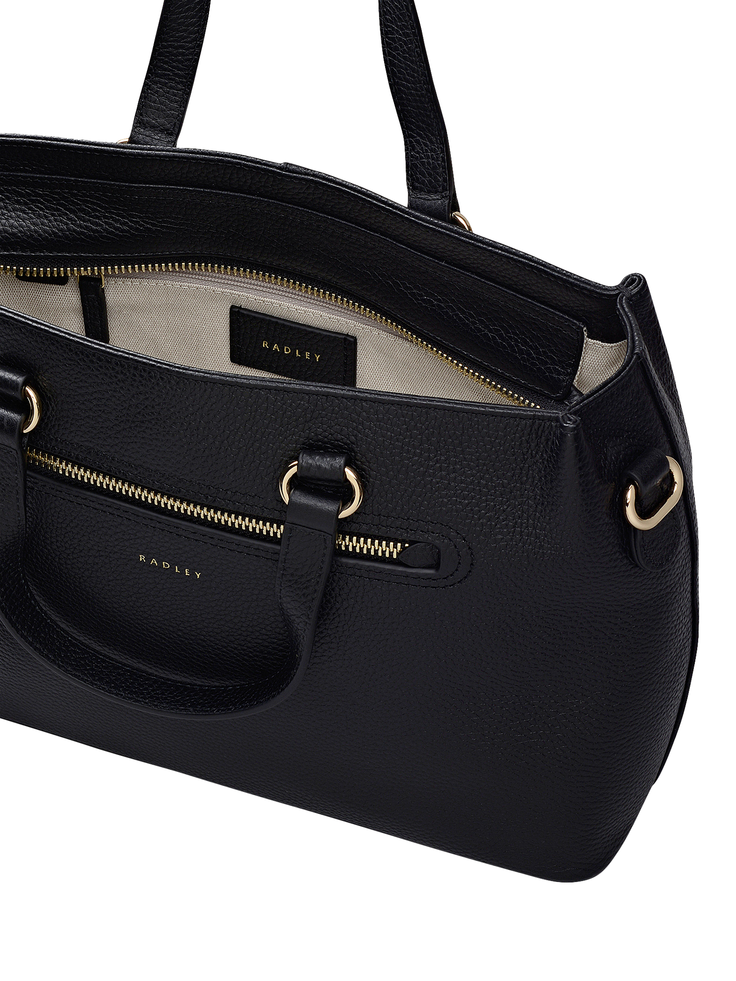 The Pickwick collection offers a range of understated designs with practical, considered functionality. Subtle details such as the set-in stitch trims, rolled top edges and gold-tone hardware showcase Radley's signature craftsmanship across this grab bag. A perfect shape for every day. Designed with grab handles, detachable crossbody strap, zipped front pocket, zip fastening, interior pockets. Finished with an interior lining and foil logo.