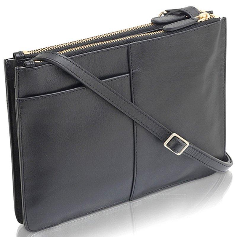 It features a central slip pocket with a zipped compartment on either side. Internally there is a slip pocket and a zipped pocket for your valuables.