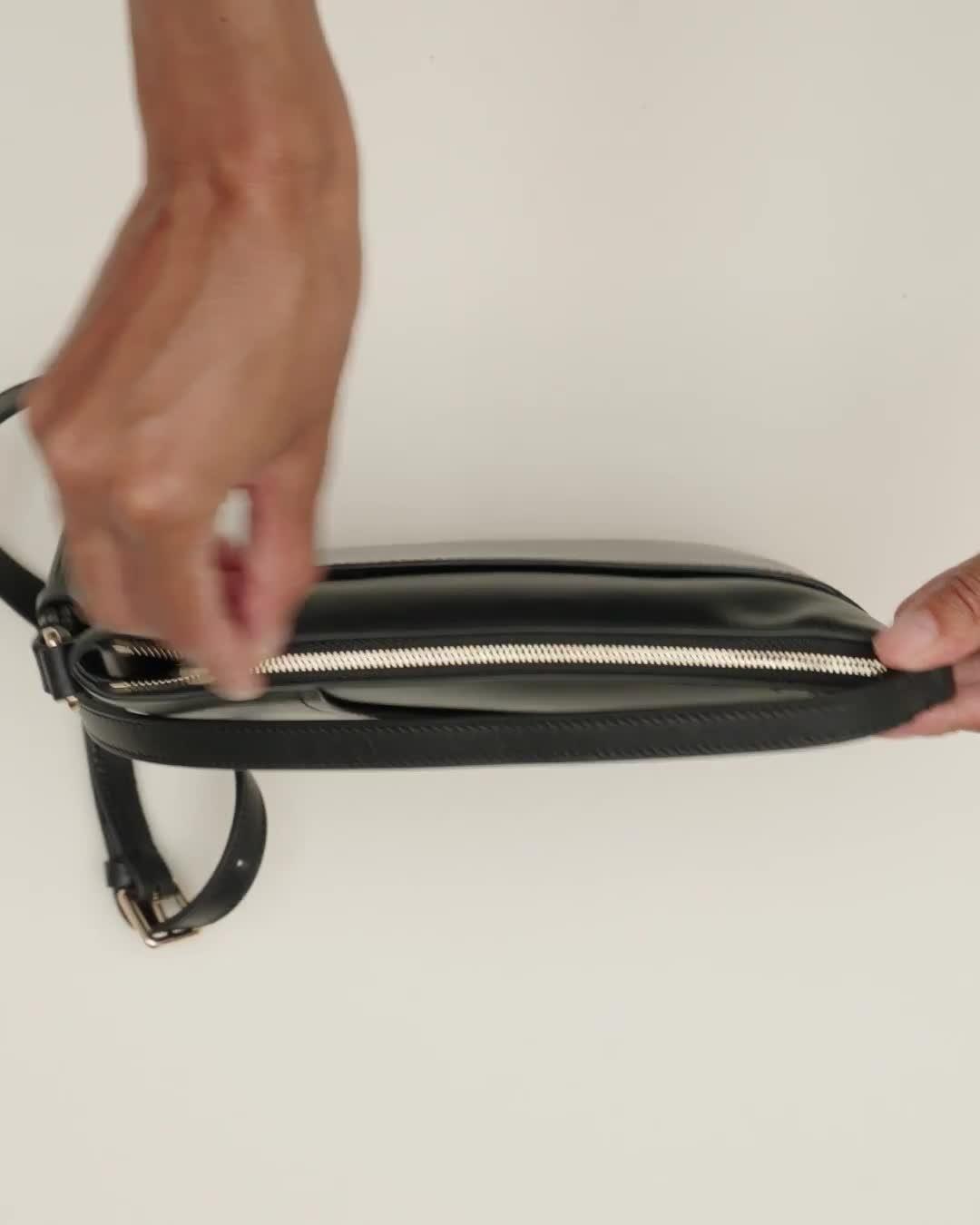 Based on an archived bestseller, this reworked edition of the Pockets bag shares the same iconic features as the original, with a slim shape, curved slip pocket and adjustable strap. Now adorned with keyring hardware and a branded tag in the same smooth leather as the bag.