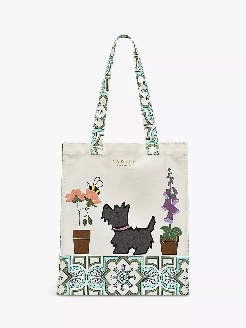Inspired by the Royal Horticultural Society's beautiful gardens. This special edition tote bag is printed with Scottie growing his plants and flowers to help wildlife thrive and remastered tile prints from the RHS archives. Crafted using recycled cotton canvas, it comes complete with a zipped pocket, foil logo and RHS collab patch.
