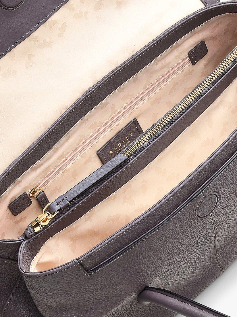 Make every outfit smarter. Radley's Ripley Road shoulder bag has that power. It s all in the soft leather, the flapover shape and the spacious interiors that give you room for every essential. Radley always adds a signature finish too, from the foil logo print to the Scottie dog key fob.