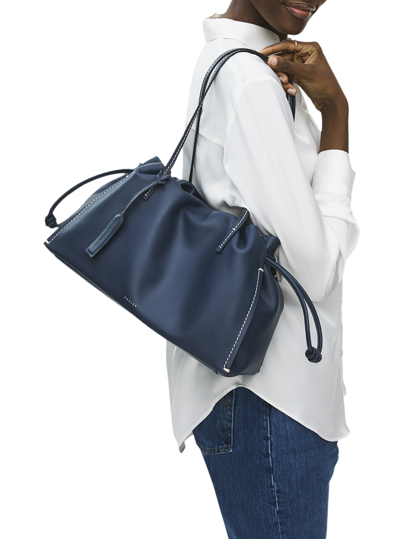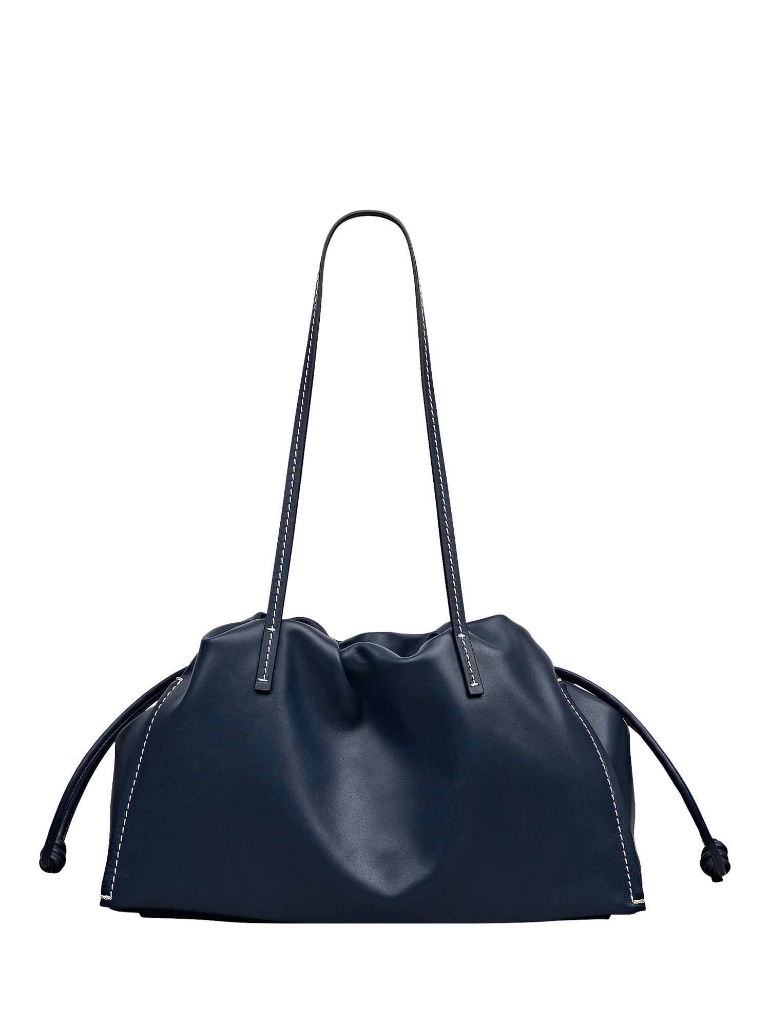 Defined by sculptural curves, the Roxburgh brings together bold proportions and softened edges, a piece that carries both strength and subtlety. Crafted in smooth leather with a soft hand feel, it is lightweight yet structured, combining elegance and practicality for effortless everyday wear. Flat leather straps mirror the drawstring pullers, each finished with functional knots that offer a quiet innovation. Thoughtfully designed to move with you. Crafted from smooth leather, this piece fits a 13” laptop.