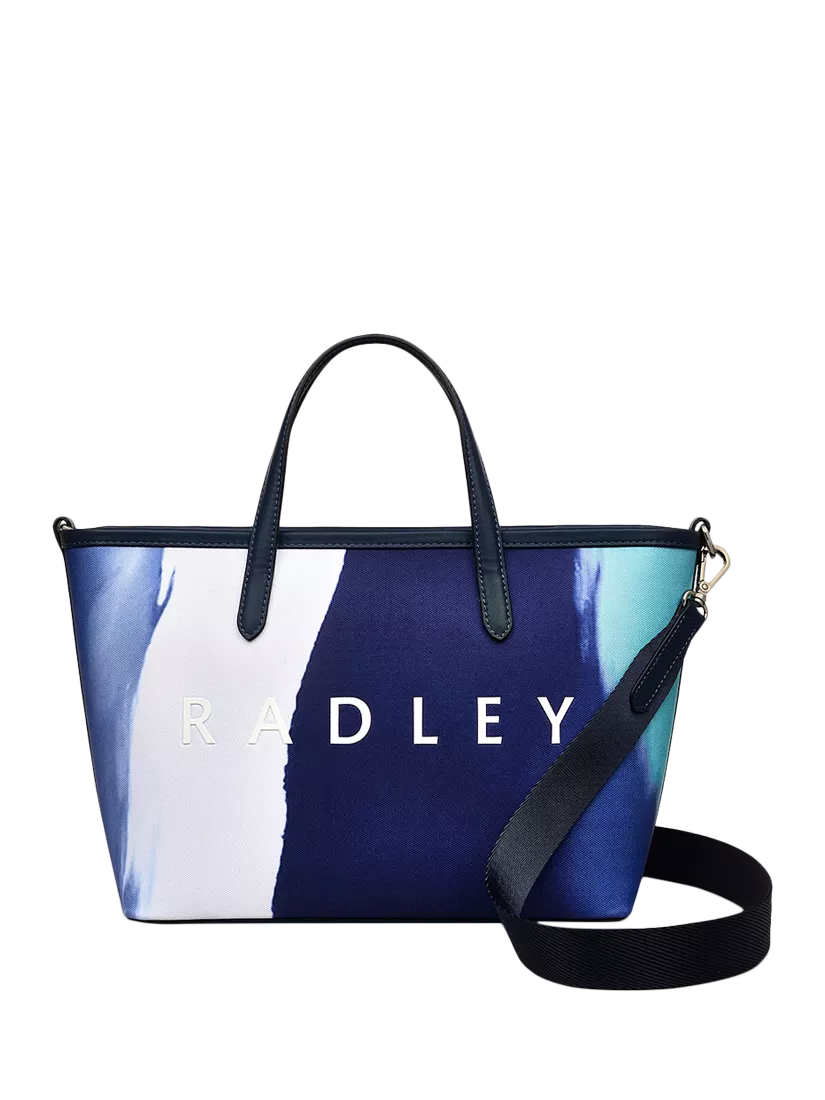 Flowing seaside-inspired stripes decorate the Southwell Gardens grab bag from the Radley Responsible collection. Made with water-based faux-leather trims and a palette of blues, this casual design will transport you to the salty shores of your favourite holiday destination.
