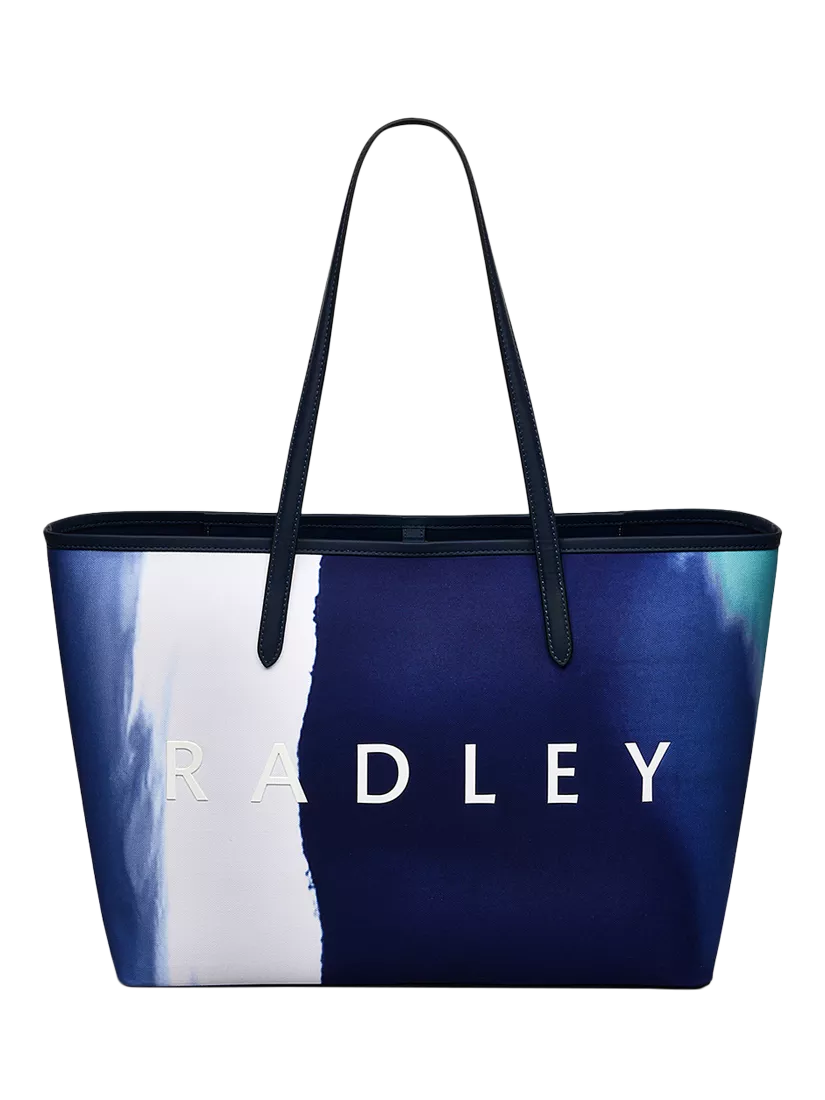 Flowing seaside-inspired stripes decorate the Southwell Gardens tote bag from the Radley Responsible collection. Made with water-based faux-leather trims and a palette of blues, this casual design will transport you to the salty shores of your favourite holiday destination.