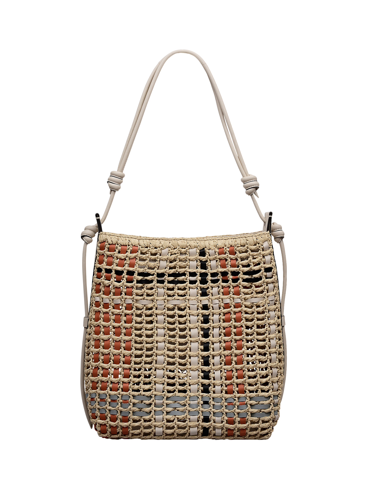 - Natural raffia in open weave