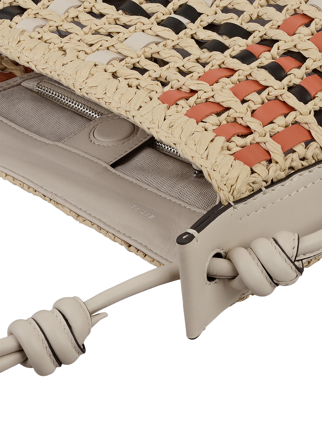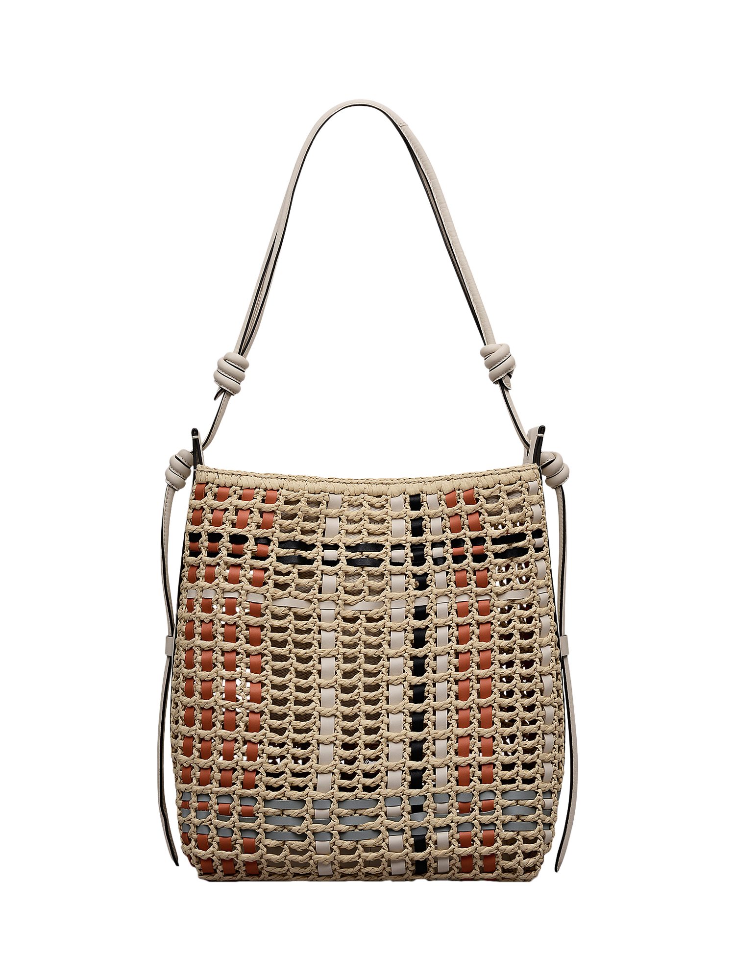 - Adjustable tubular strap with knotted details
