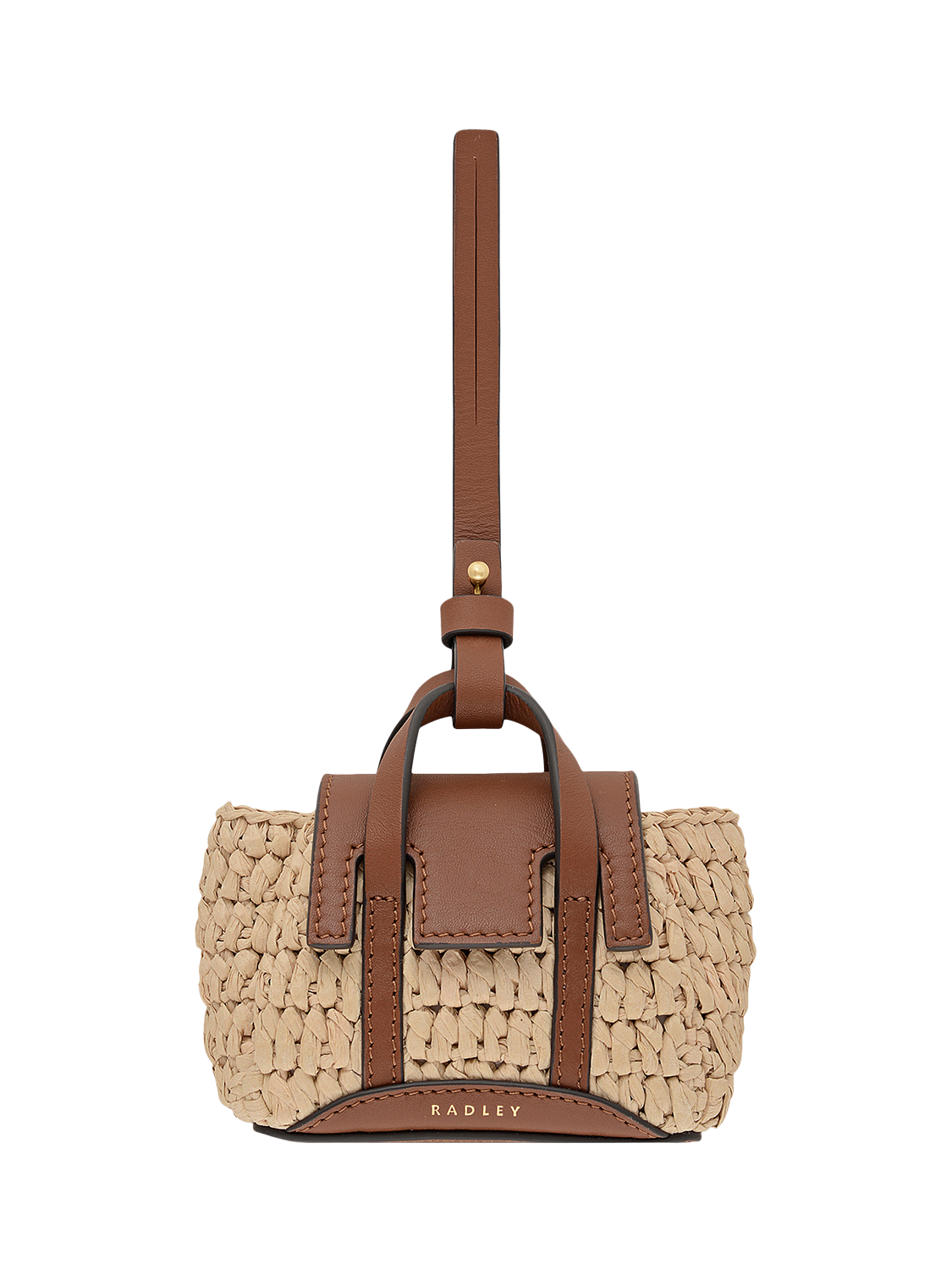 Radley have transformed one of their luxury handbags into a mini bag charm. Just like its full-sized counterpart, this replica has the same construction in soft leather and woven raffia, with a flap, grab handles and now, a leather leash to attach it to your handbag. The perfect size for storing your cards or earbuds.