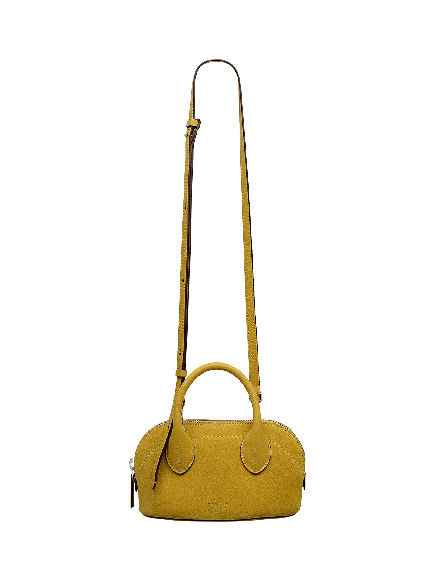 It’s the season for the micro bag. Another compact shape, The Muriel joins Radley's collection with coveted miniature proportions and exaggerated features, such as the large handle tabs and the chunky zip fastening. A mini bowling bag shape, crafted in soft Italian suede with the brand's new heritage mark detailing tucked inside.