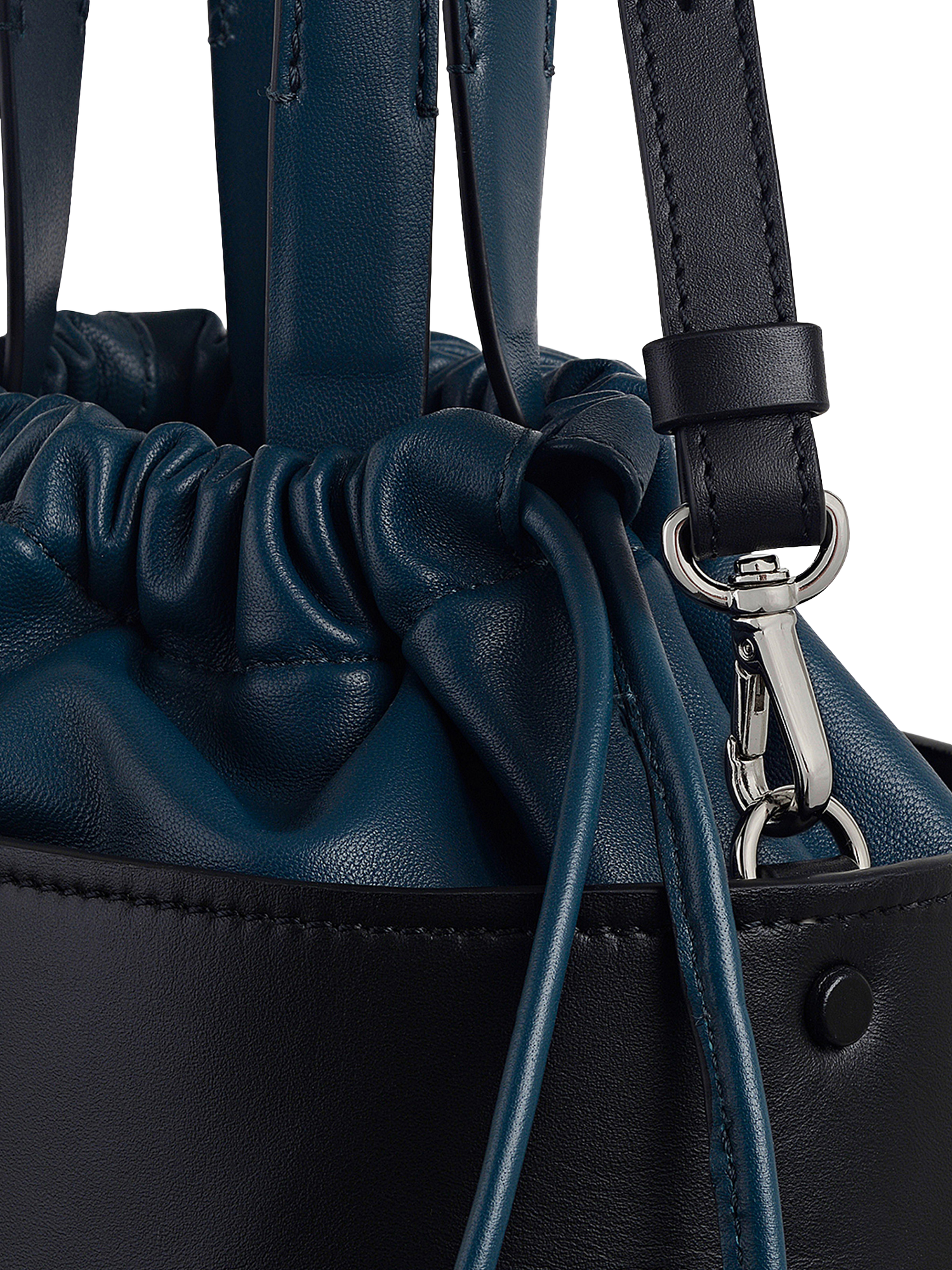 Structure and suppleness come together across The Portobello, a modern silhouette made with a bucket-style base and a super soft drawstring top in sheep nappa leather. Accentuated with thoughtful details such as asymmetric seams, a padded grab handle and a detachable cross body strap. Comes with a dust bag.