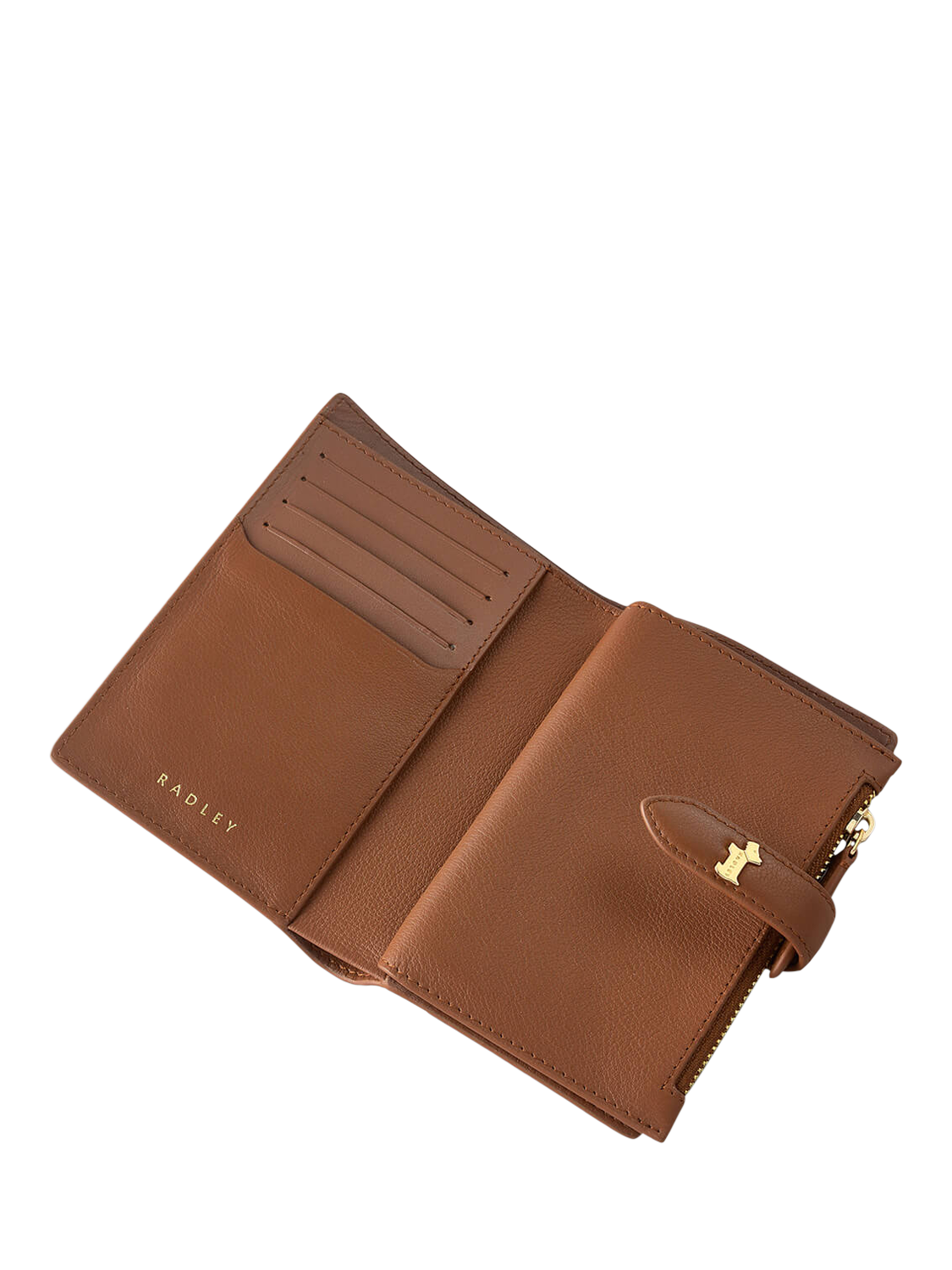 Based on a previous Radley bestseller, the Willis Street purse is an updated shape with signature, coveted details. Made with grained leather and a dog studded press stud tab, it opens like a booklet to reveal modern, functional interiors with space for every card and coin.