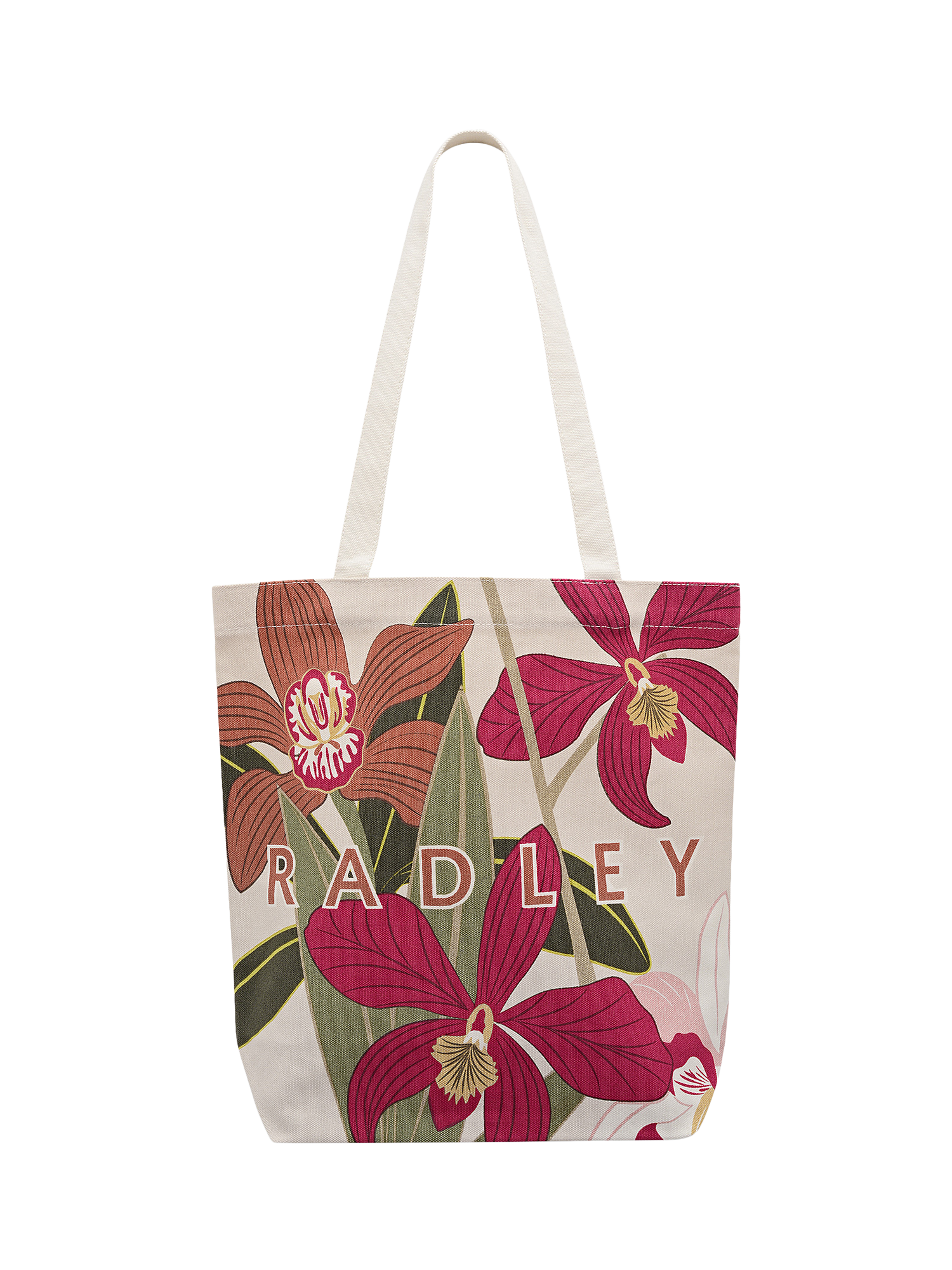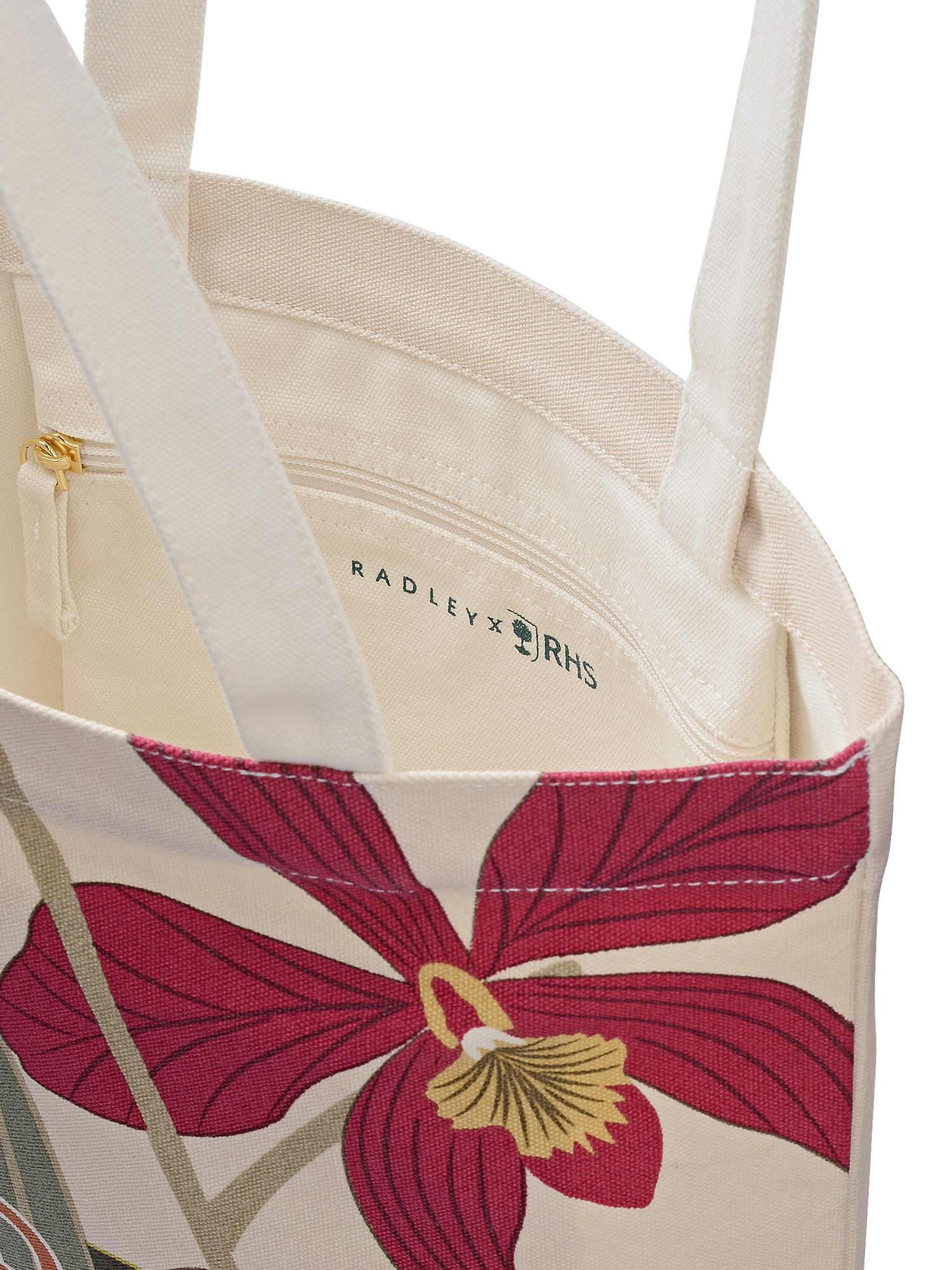 Inspired by the beautiful blooms growing in the Orchid House at RHS Garden Wisley, this canvas tote from Radley's latest collaborative collection is made using soft cotton and screen prints. Finished with logos to mark the latest Radley x Royal Horticultural Society collaboration. Designed with twin handles and an interior zipped pocket.