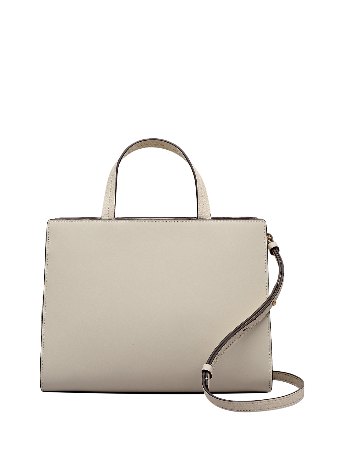 Designed with flat grab handles with centre stitching, detachable crossbody strap, zip fastening, canvas lining, and two slip pockets.