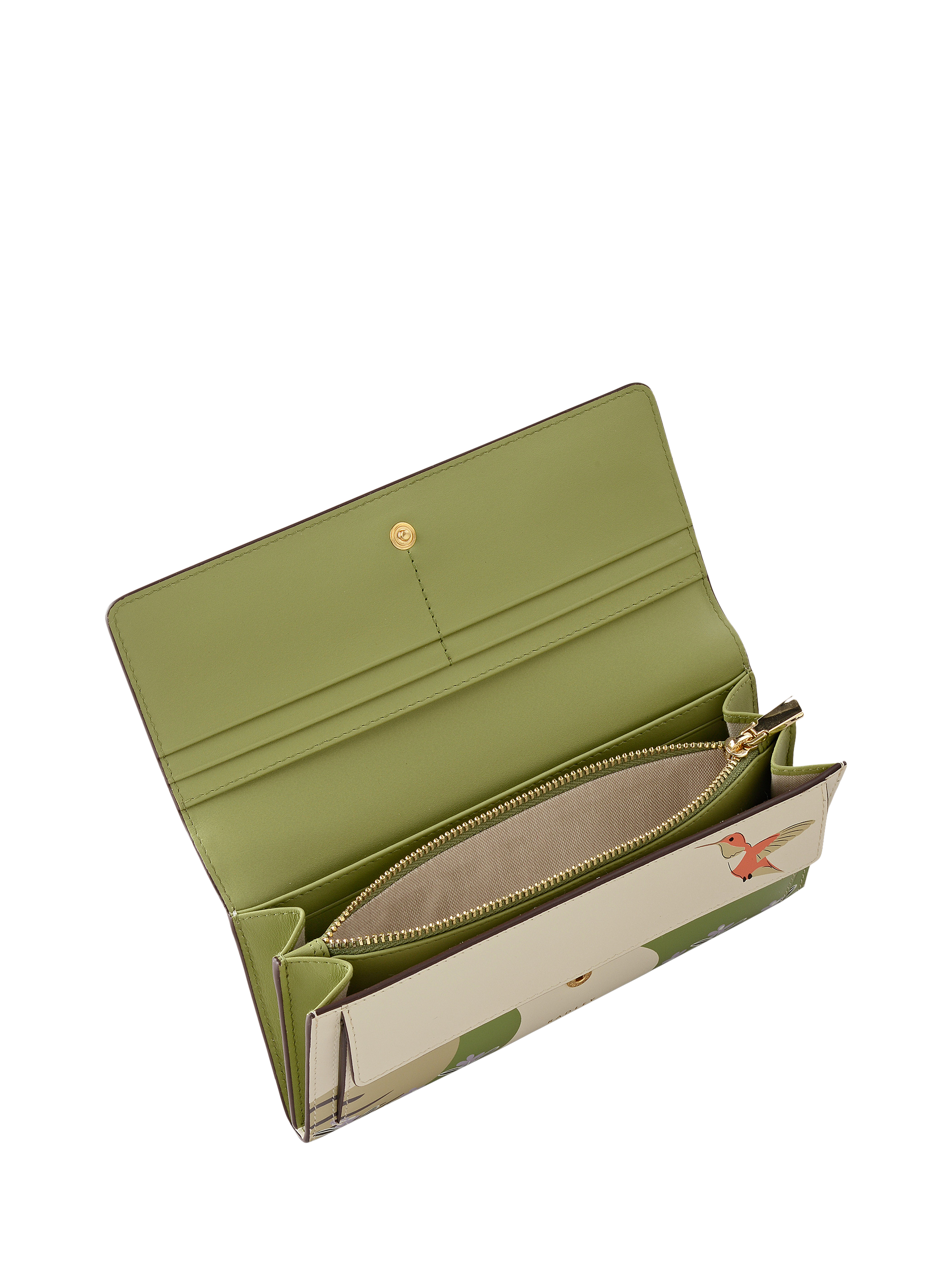 Features a flap-over shape with press-stud fastening, two compartments, 10 interior card slots, flap-over pocket, zipped pocket and slip back pocket. Comes with a dust bag.