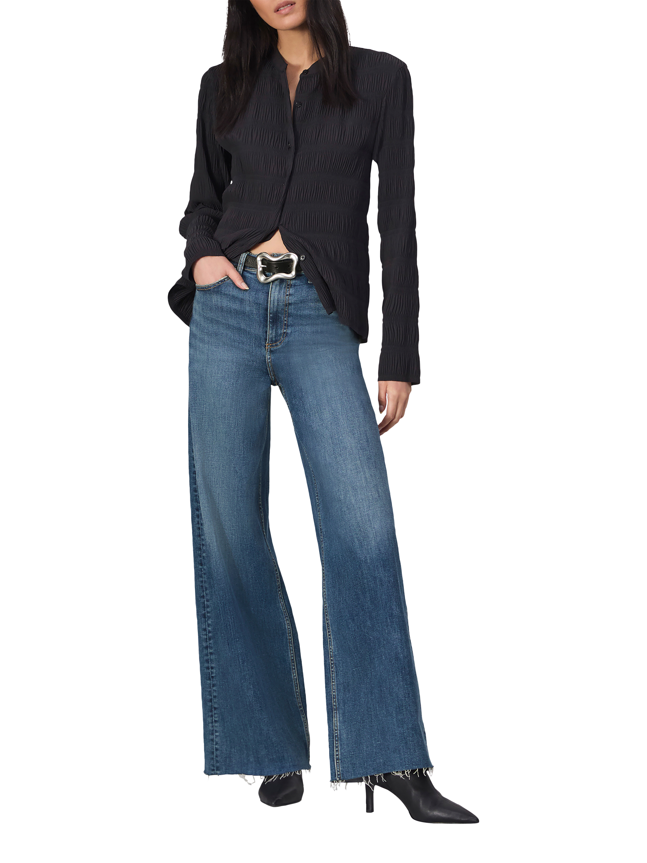 The Sofie. This is a high-rise fit with a full wide leg that's a rag & bone office favourite. Crafted from Flexi denim that smooths, sculpts, and stretches for ultimate comfort and style wherever life takes you.