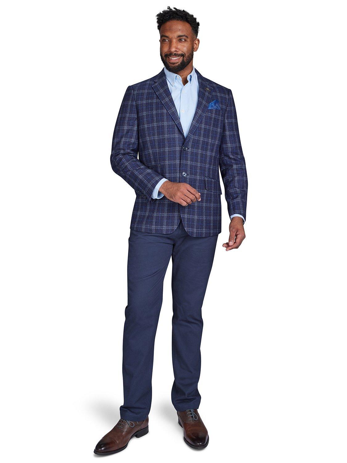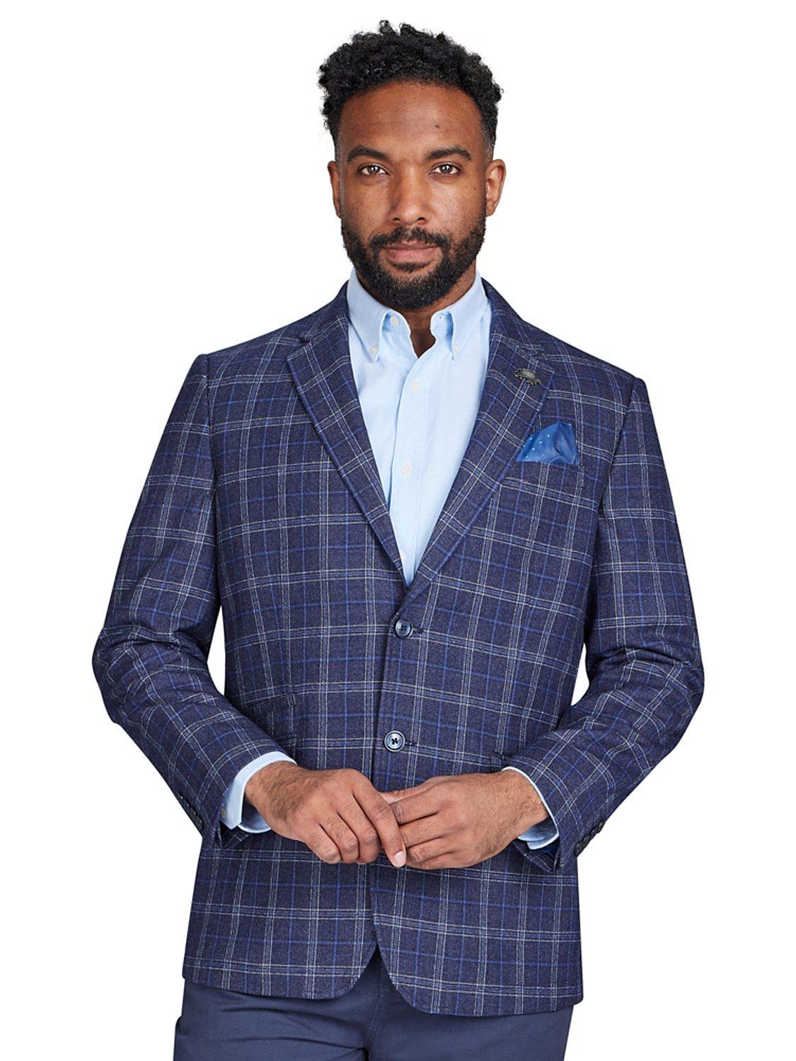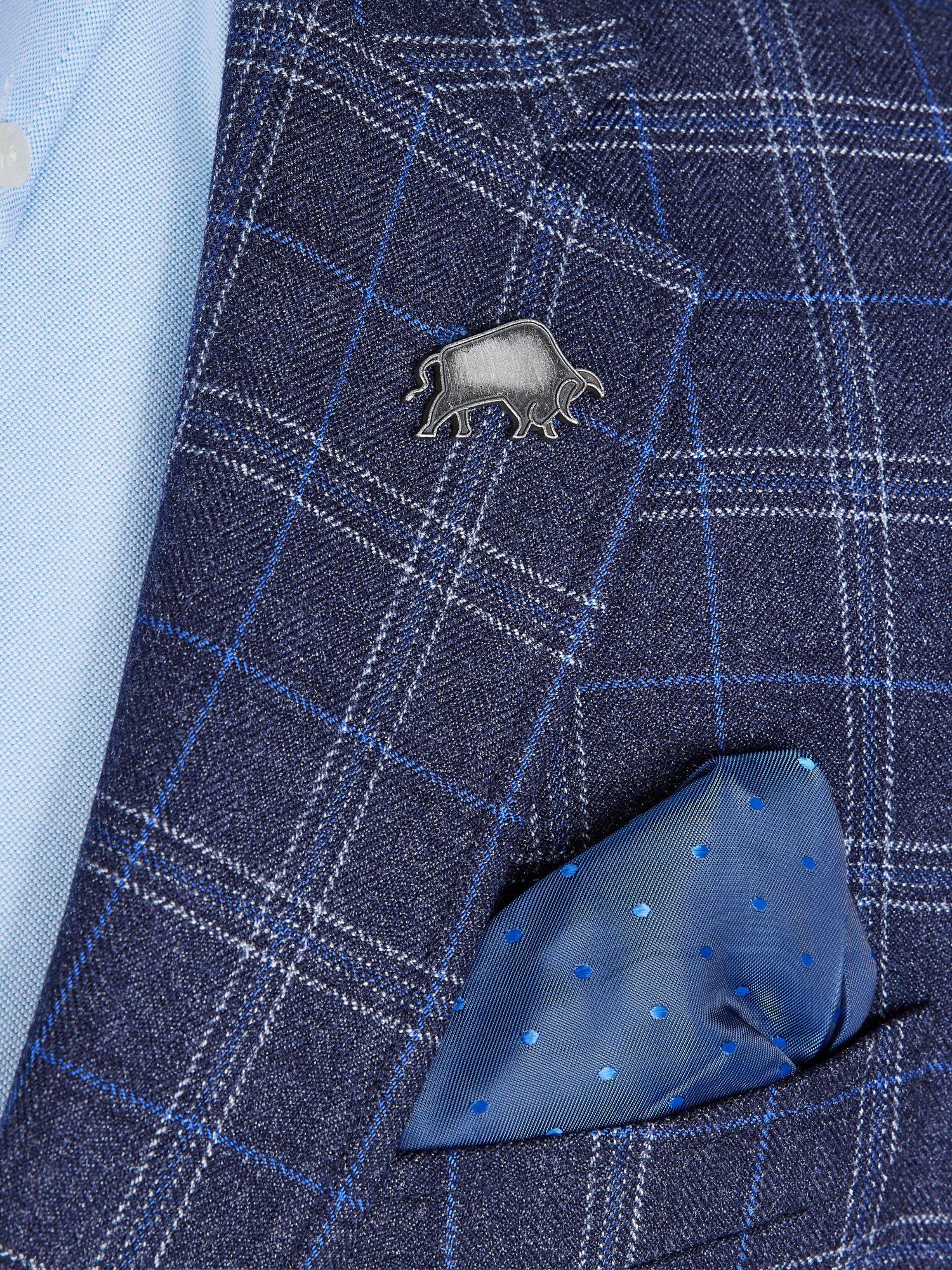 Elevate your wardrobe with this Checked Wool Blazer, tailored to a flattering classic fit with a timeless colourway and large check pattern. Crafted from a high-quality wool polyester blend, this blazer is both stylish and hard wearing. Features include a vibrant blue inner lining, chest pocket with pocket square, and a metal bull logo on the lapel fastening. Step up your style game with this versatile and sleek blazer.