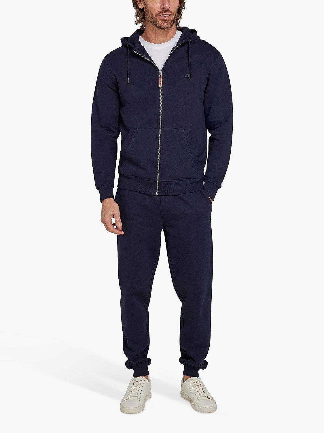 The Classic Zip Through Hoodie is a must-have for any man's wardrobe. Made of cotton, it offers maximum comfort and durability for long-lasting wear. The soft fabric and adjustable large hood provide warmth and versatility, while the flattering, classic fit and stylish dark blue colour make it the perfect layering piece for any outfit. Plus, with its full-length zip and cuffed sleeves, it's both functional and fashionable.