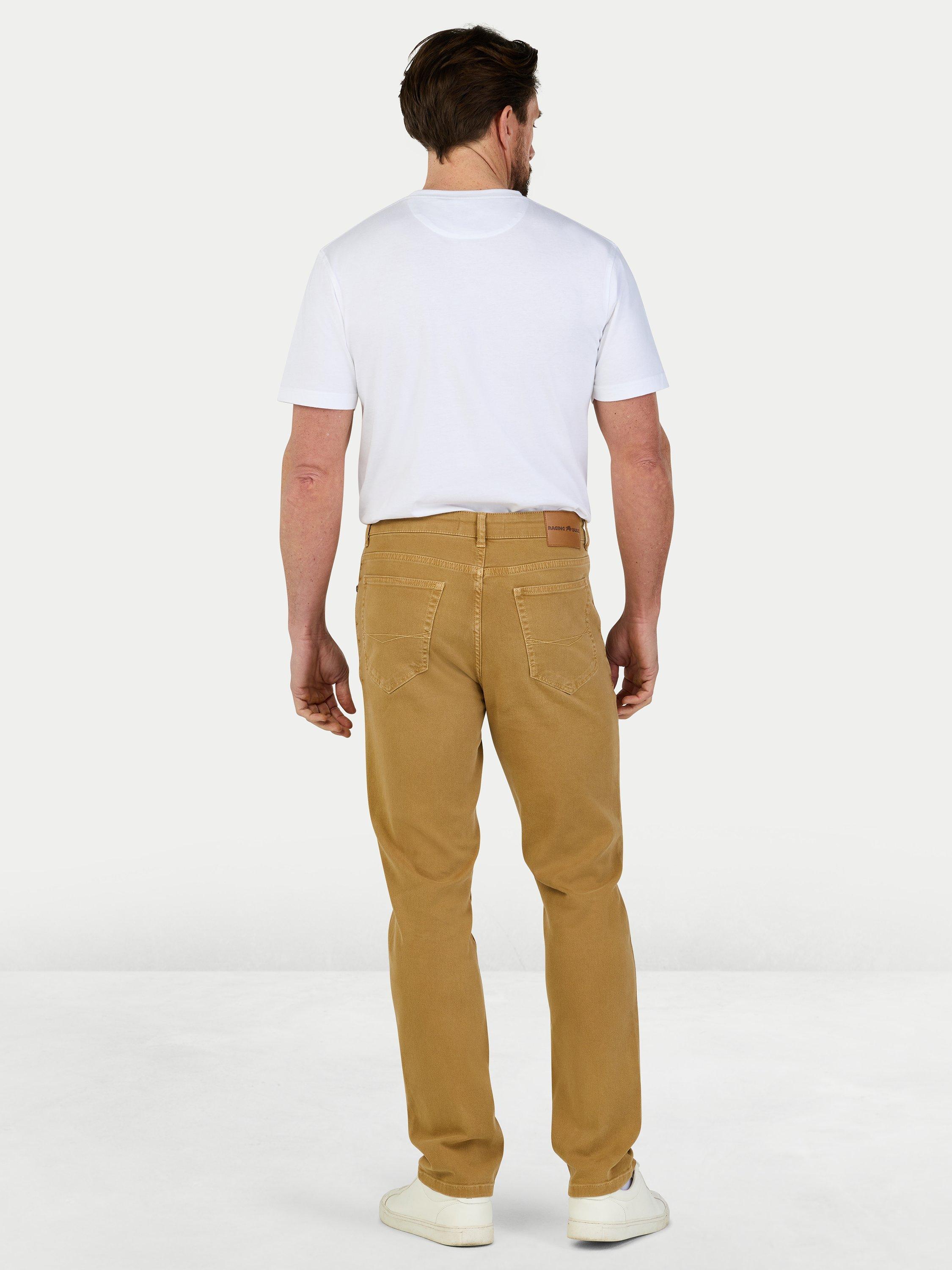 Expertly crafted from a high-quality cotton elastane blend with just the right amount of stretch, the Coloured Denim Stretch Trousers in Sand offer both comfort and durability. Perfect for any occasion, these smart trousers effortlessly combine a classic style with a casual feel.