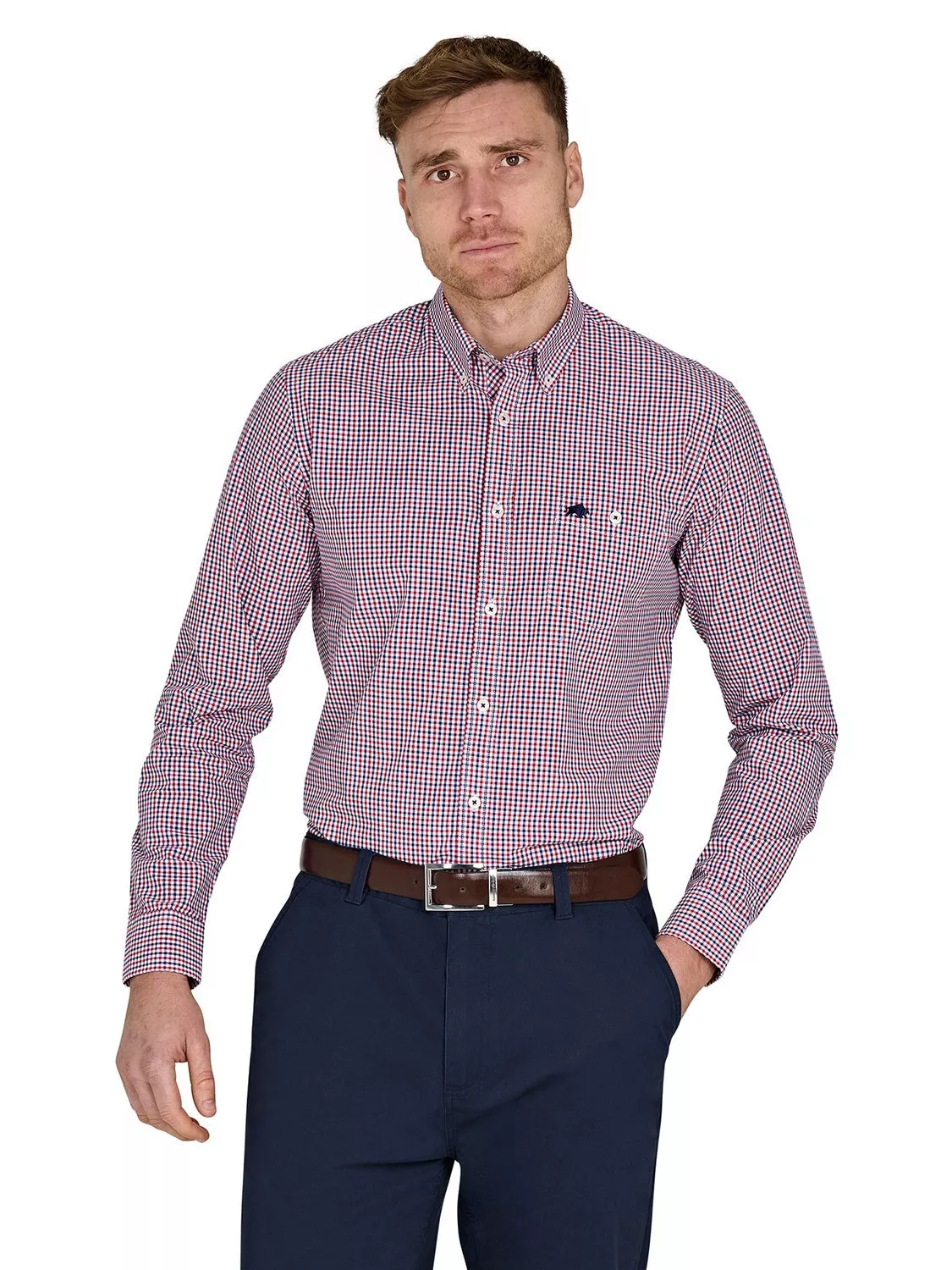 Relaxed in style with a breathable handle for everyday comfort, this cotton shirt from Raging Bull takes influence from classic tailoring with its check pattern and comes in a regular fit.
