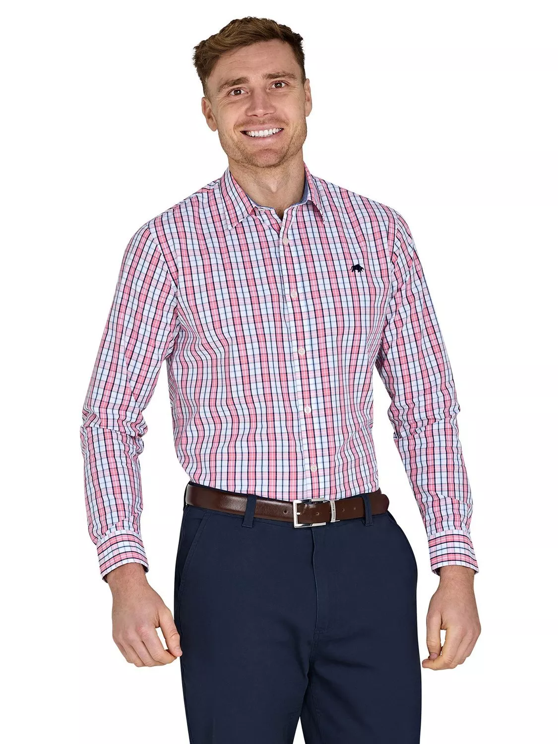 Offering a soft and durable handle, this crisp shirt from Raging Bull is rendered in a classic check pattern and is cut to a fluid fit.