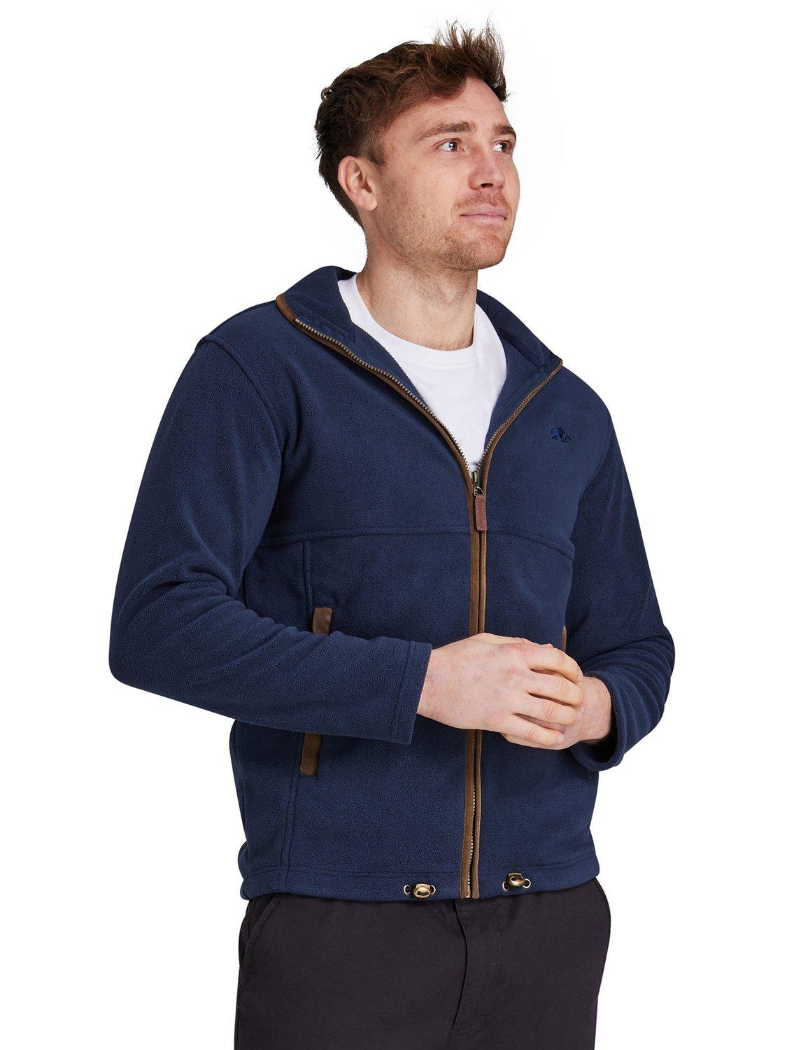 This men's Fleece Zip Through Jacket is the perfect layer for a smart-casual look. Crafted from soft, warm polyester, it features a high neck, zip-through front, tapered sleeves, and contrast-coloured edging. The classic fit offers versatile styling, while the zipped pockets and embroidered logo complete the look. Deep forest green countryside fleeced jacket in sizes small to big and tall - up to 6XL.