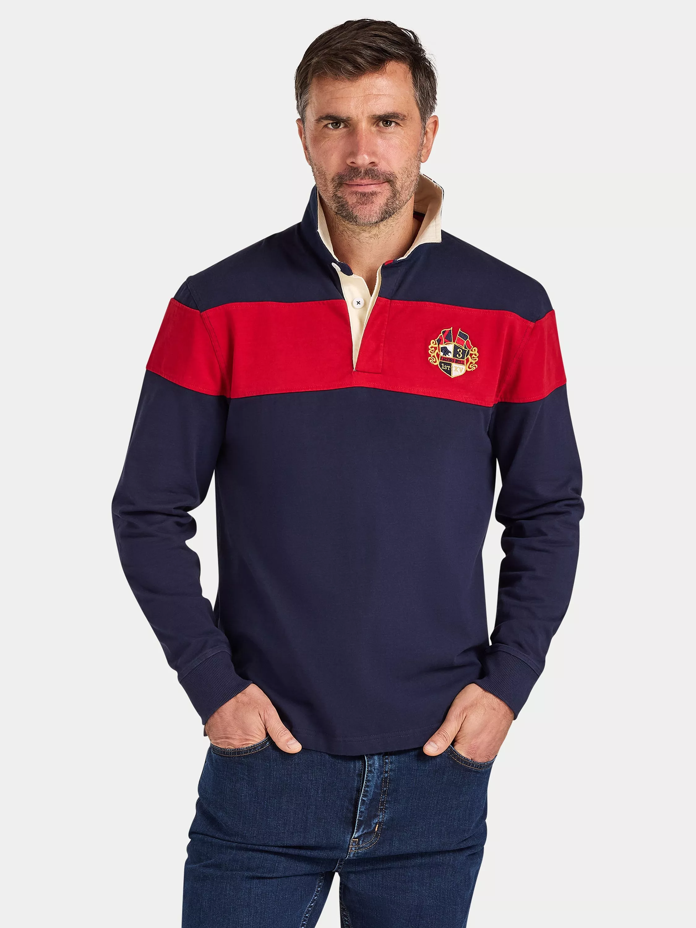 This men's rugby shirt is crafted from 100% cotton with a classic regular fit. The chest panel detail provides a unique look with an embroidered crest in homage to Phil Vickery's Rugby World Cup winning player number.