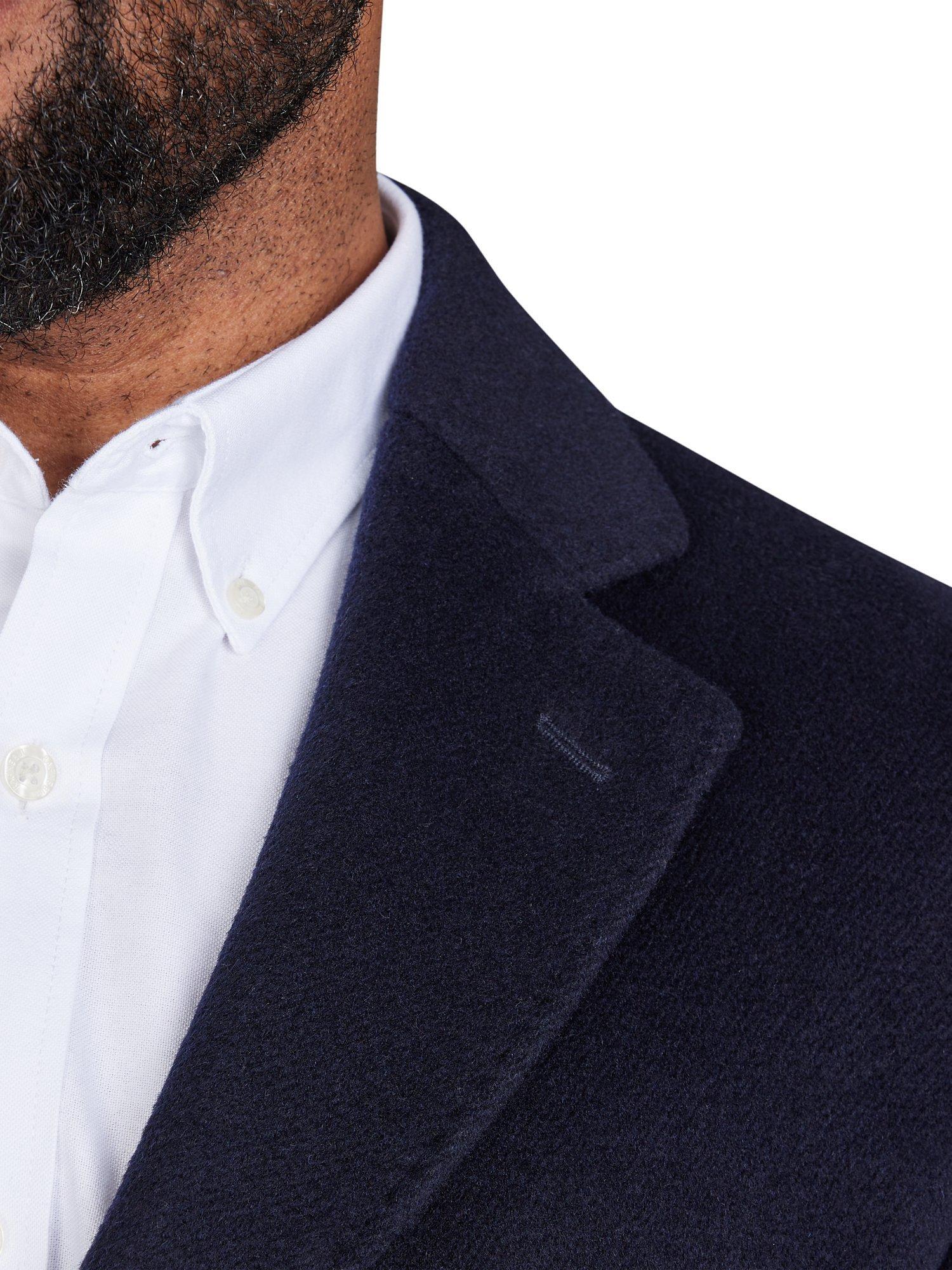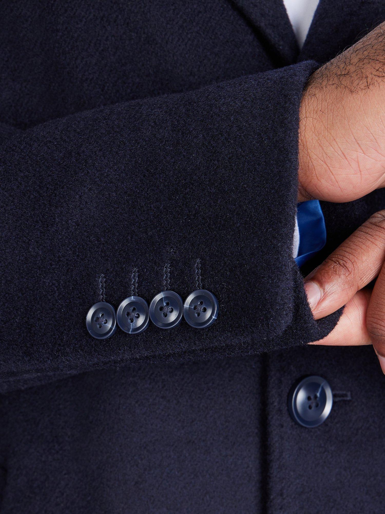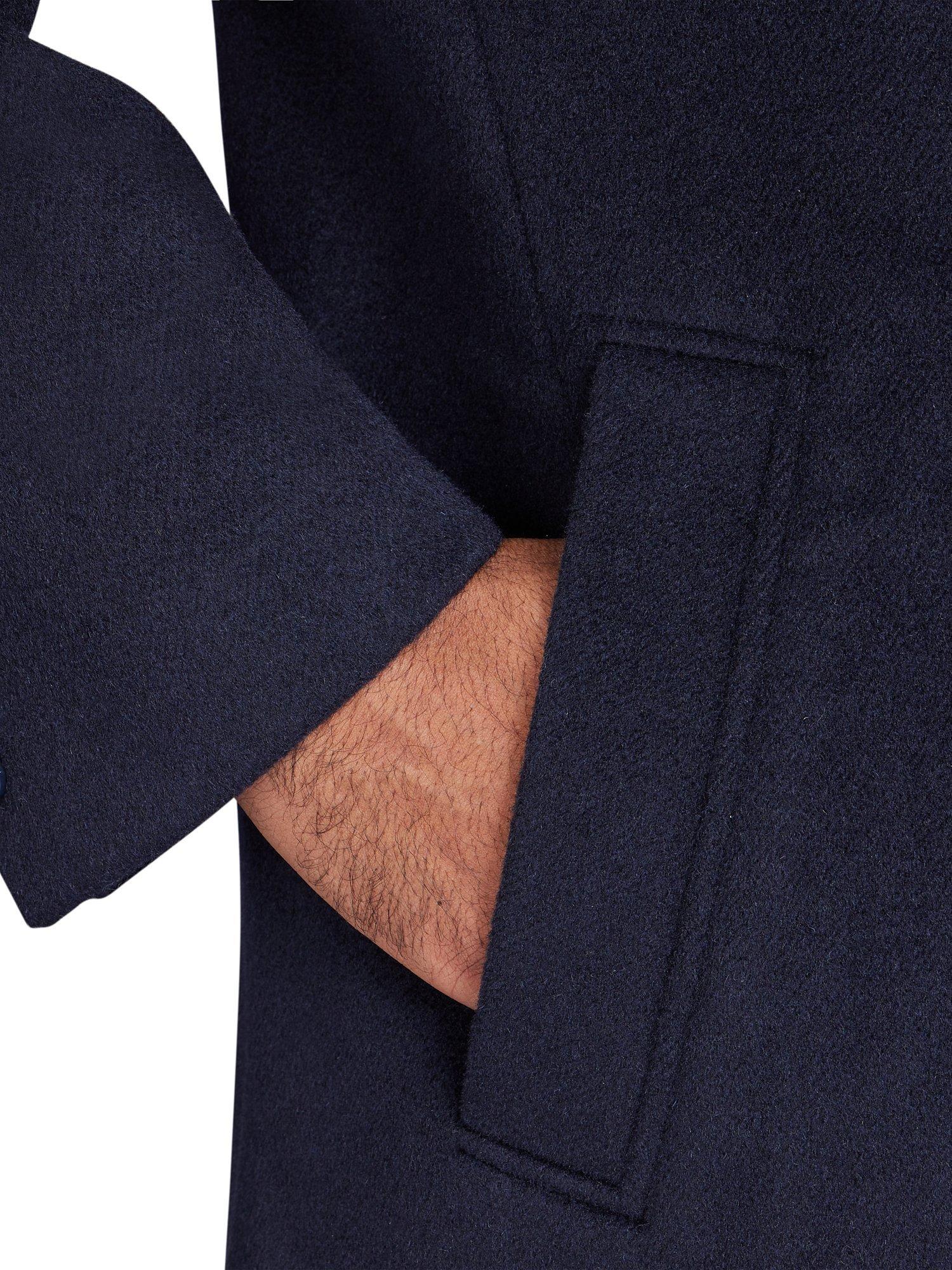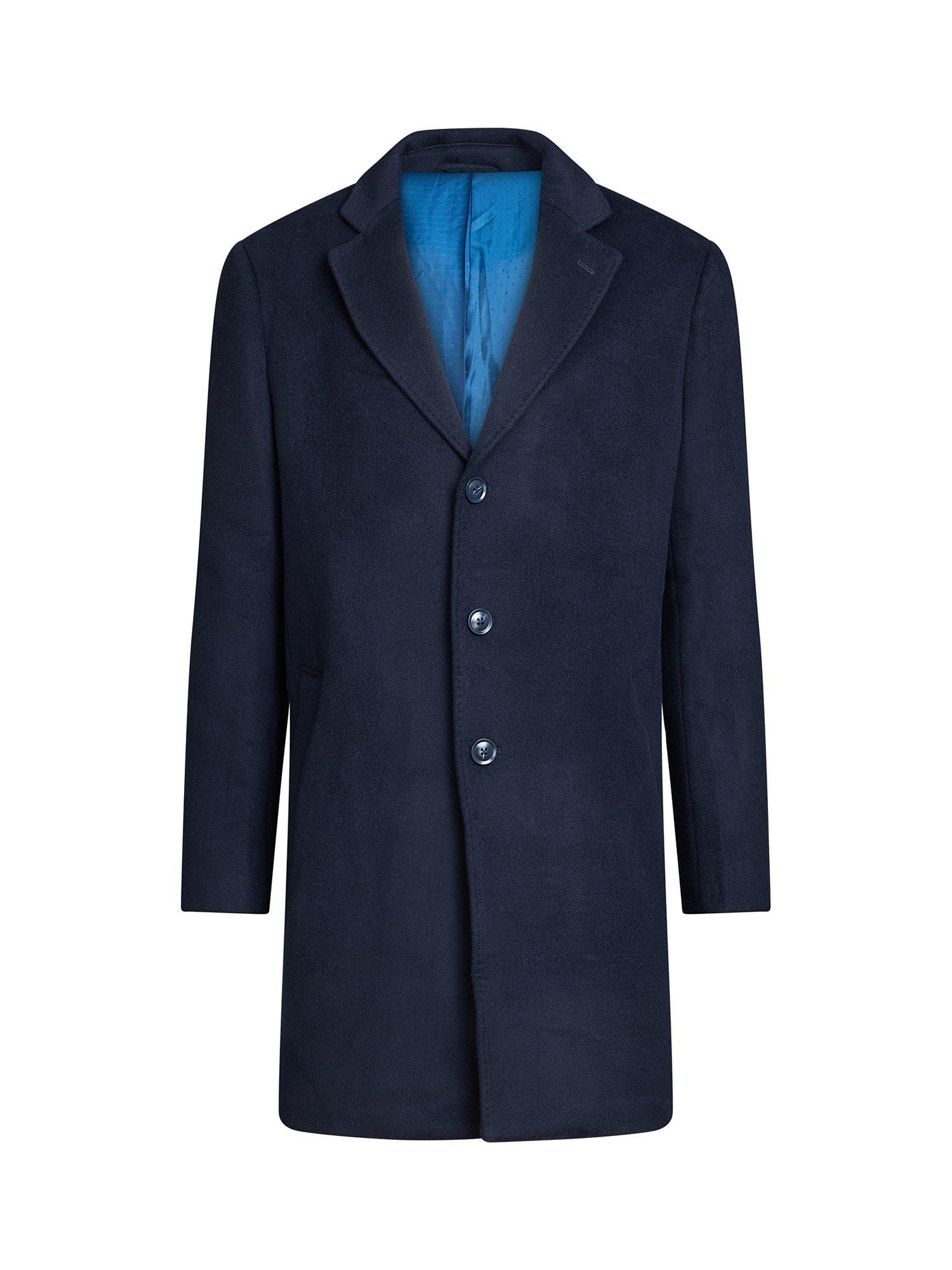 Elevate your coat collection with the Wool Blend Coat, made with high-quality materials for ultimate comfort. Featuring a flattering classic fit, it boasts a bright blue inner lining and clean, structured lines. With practical pockets and a versatile dark blue colourway, this coat will add a timeless and stylish touch to any outfit, while also providing warmth and durability.